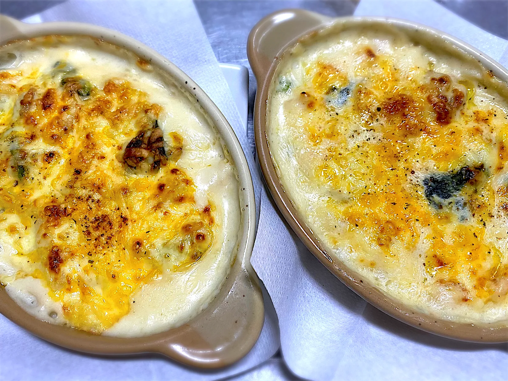 鶏肉、海老、マカロニ、コーン、ほうれん草、玉葱