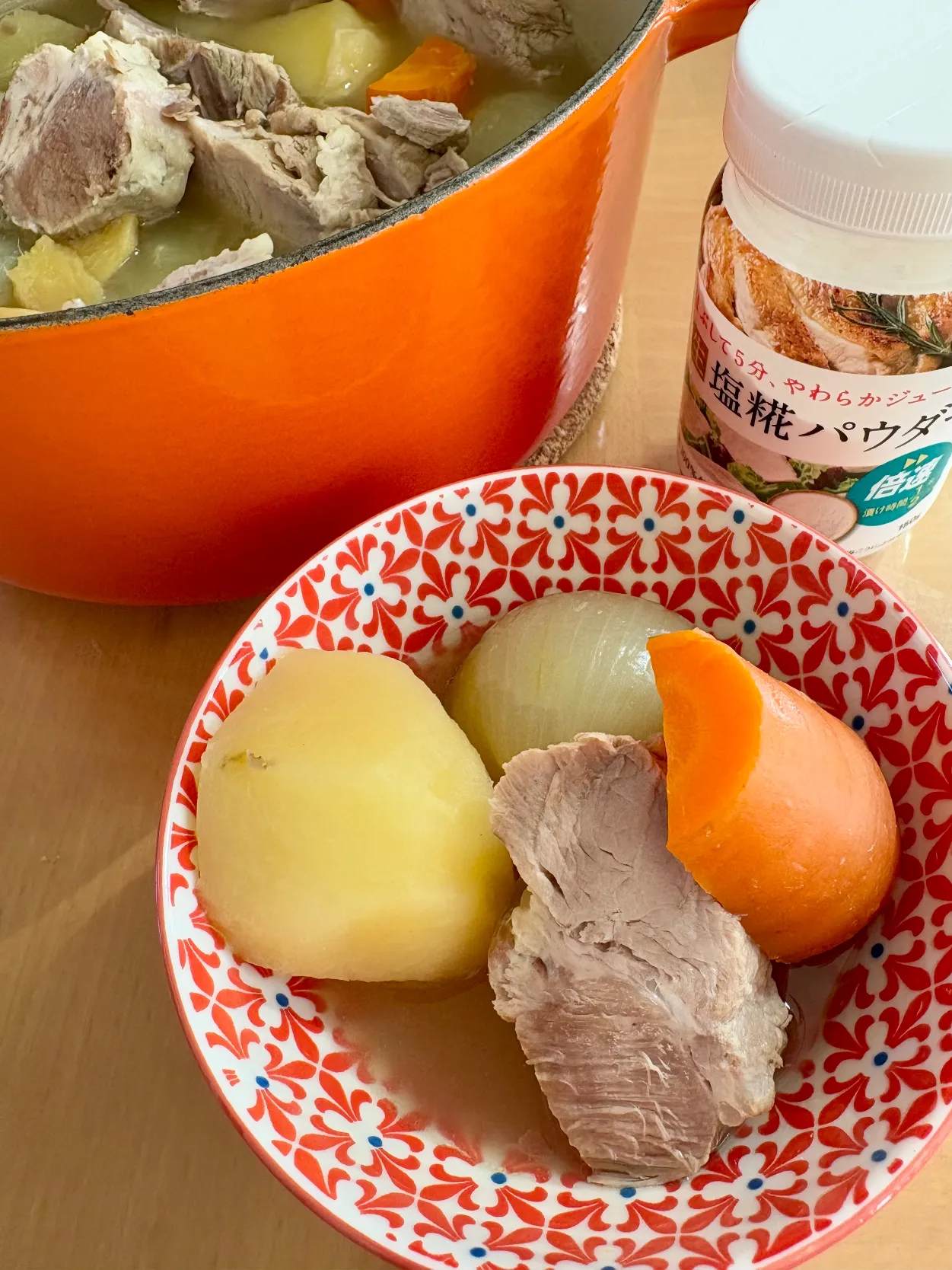 生姜と長ネギ(青い部分)と一緒に煮込んで柔らかくなったら