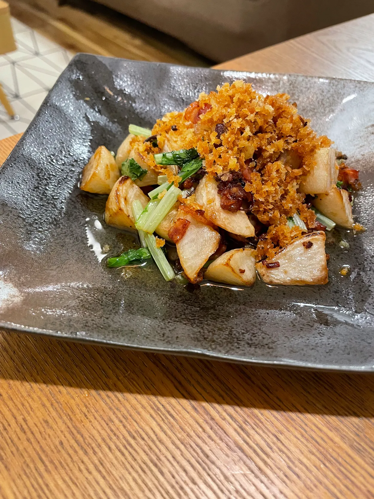 蕪とベーコンのペペロンチーノ炒め