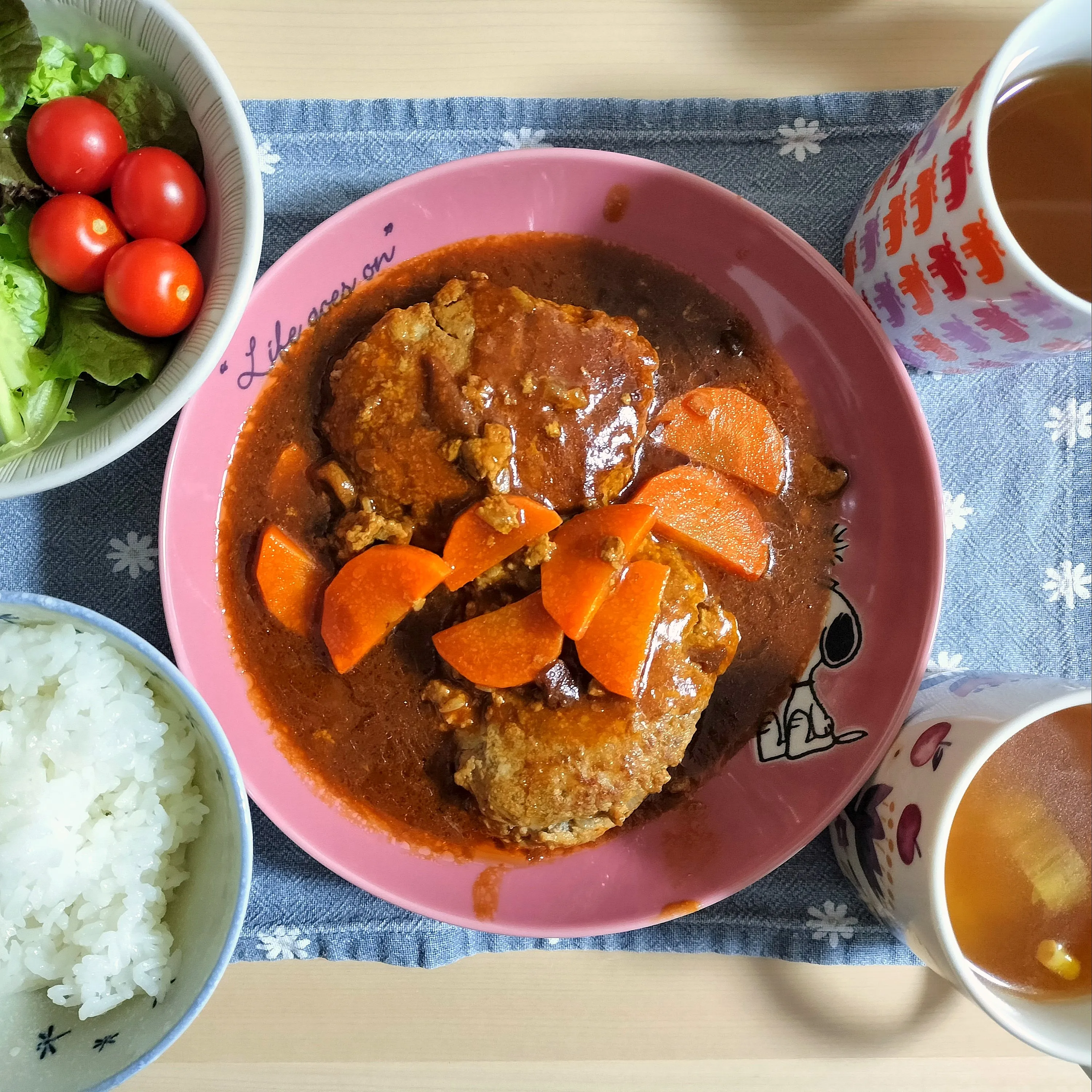 🌛*゜チーズ煮込みハンバーグ / サラダ / コンソメスープ