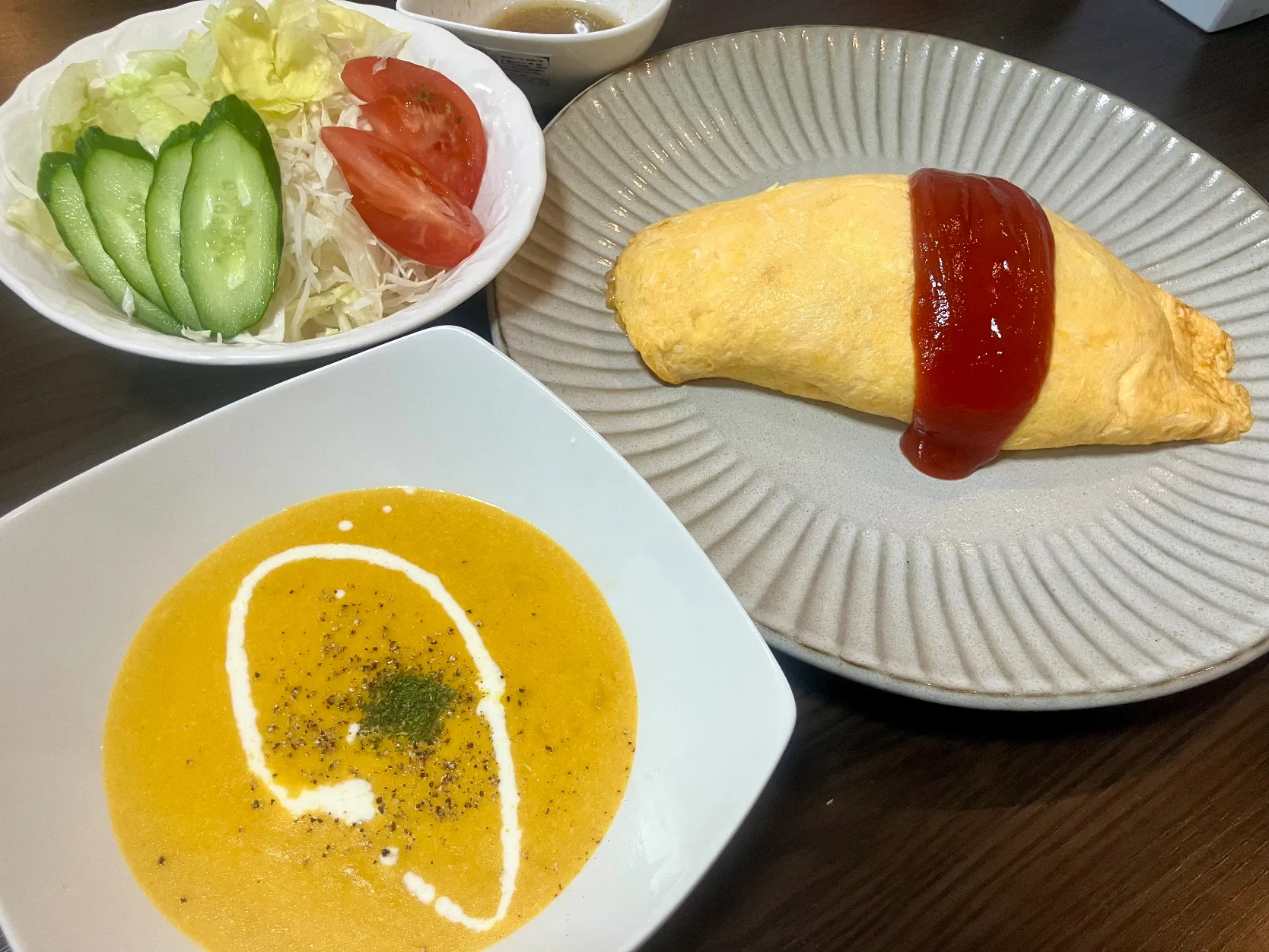 #スープ #ポタージュスープ #ポタージュ #オムライス #残り物 #晩ご飯 #自炊 #乳飲料