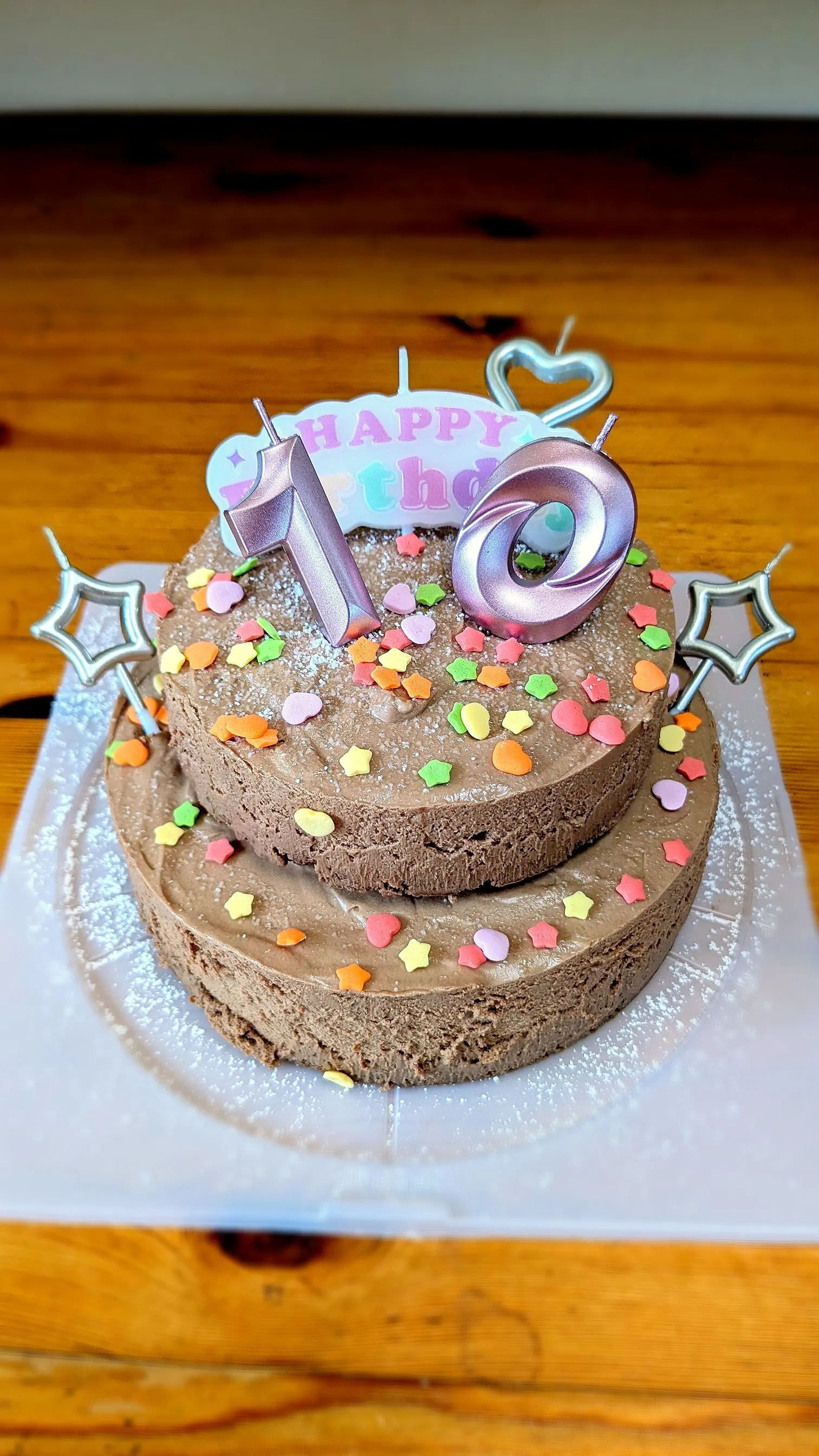 今年のケーキは、息子のリクエストでフルーツのトッピングはなし💡