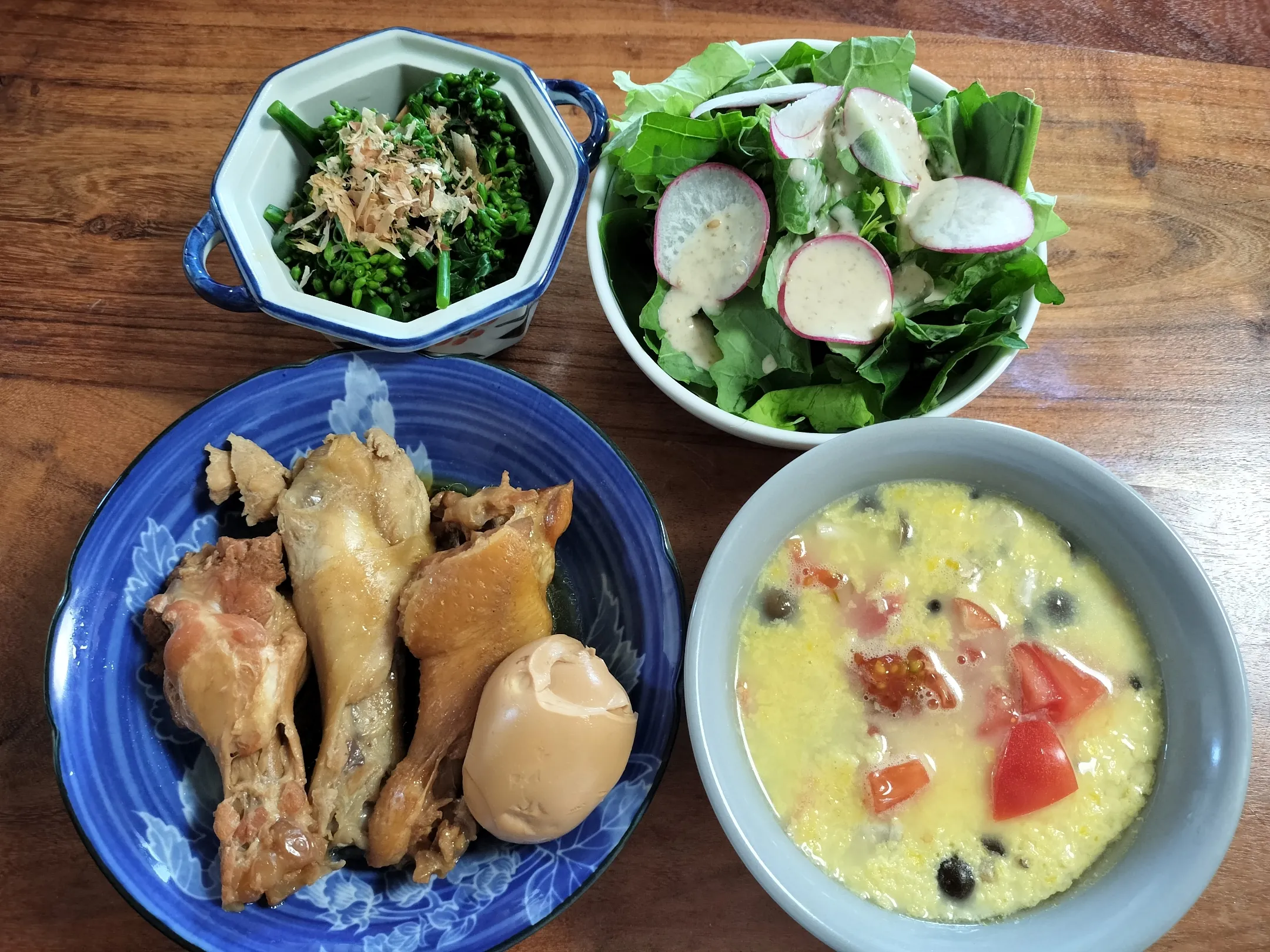 左下の手羽先は、里父が里子ちゃんに圧力鍋の使い方伝授の為に一緒に作ったもの。