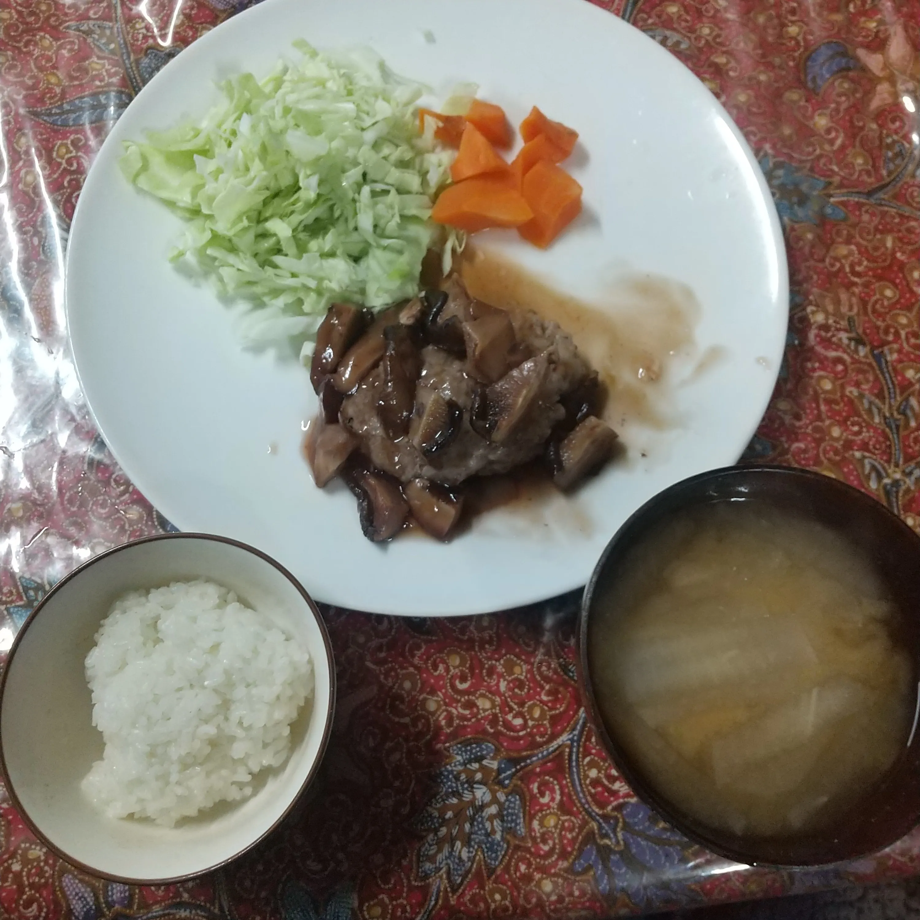 ソース 干し椎茸、戻し汁、赤ワイン、コンソメ、醤油少々、を片栗粉水でトロミを