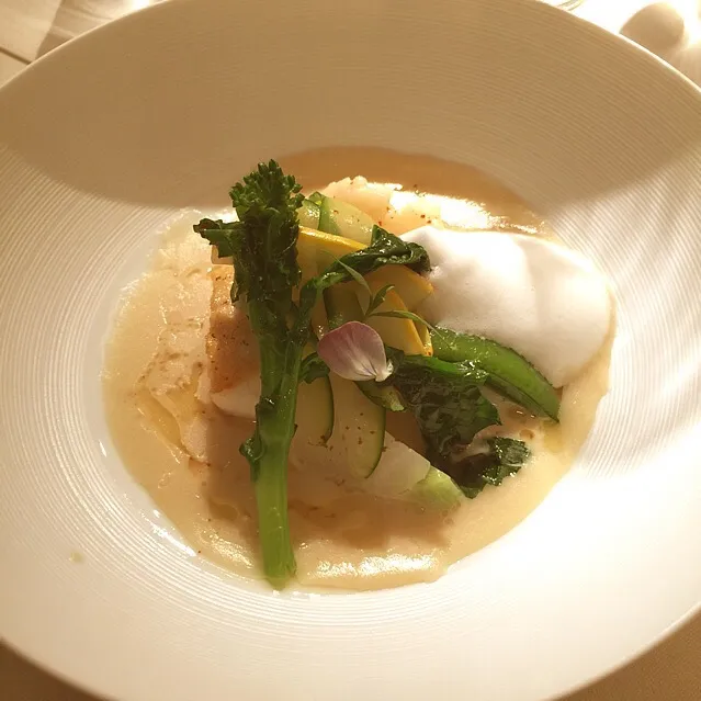 真鯛と色鮮やかな野菜のリュバン 榛の香る軽やかなスープ仕立て