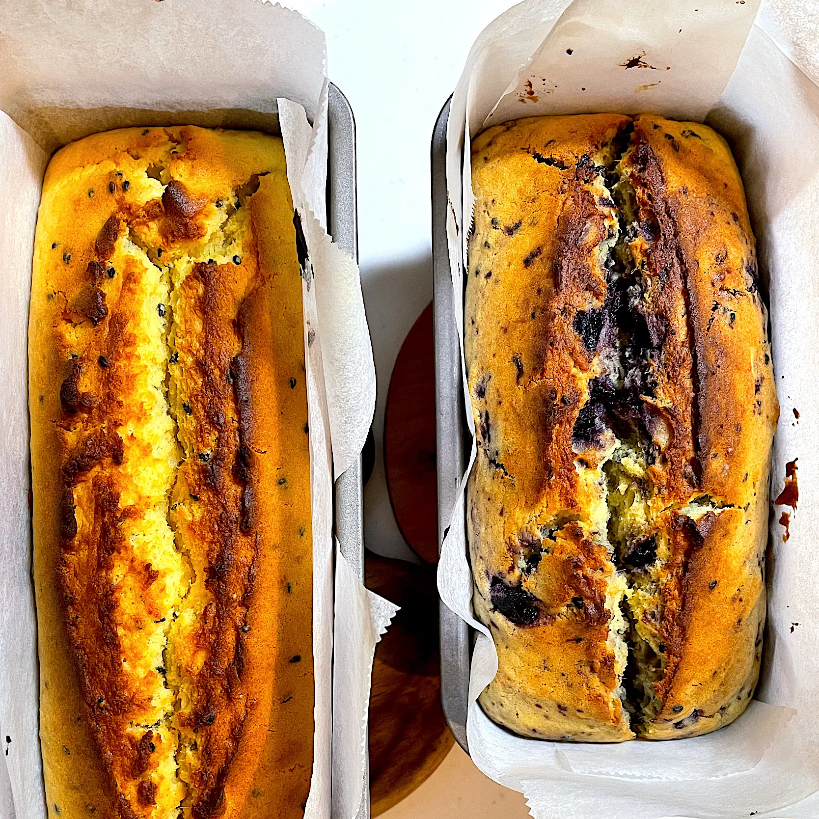 左側普通、右はブルーベリーをマーブルっぽく混ぜたやつです。明日カットしてみよう。🍠
