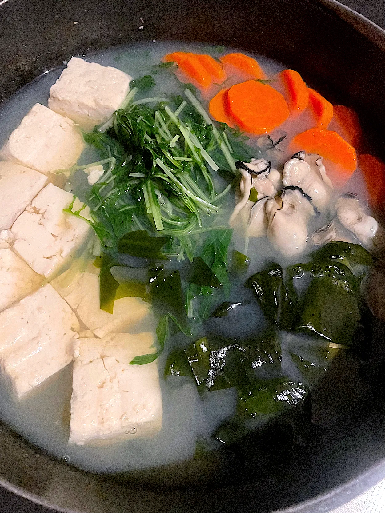 牡蠣と生わかめいっぱい入れていっちゃんと食べたいな💕