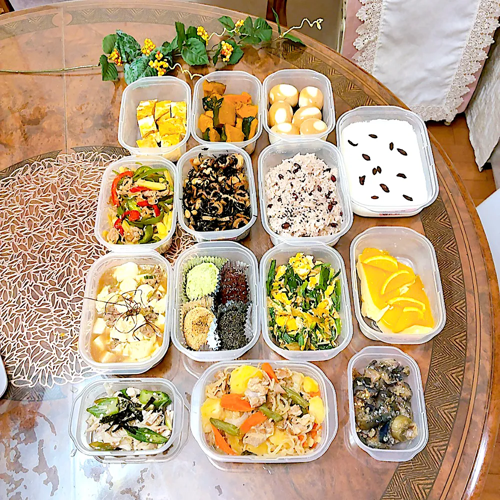 ご両親の作り置き.⋆𝜗𝜚 たくさんのお料理