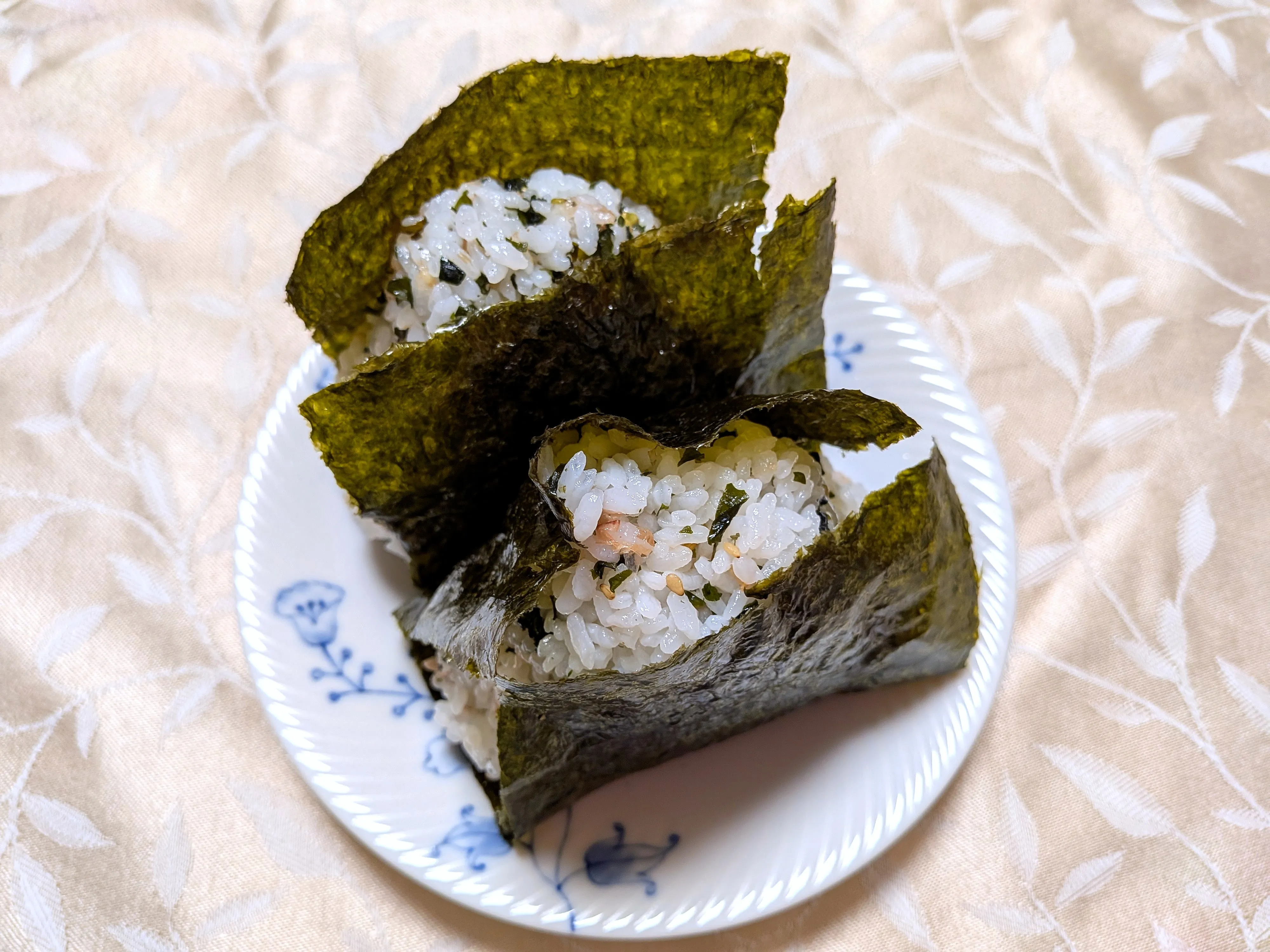 ちょっと時間が足りないので、今夜も混ぜこみおにぎりにしました。