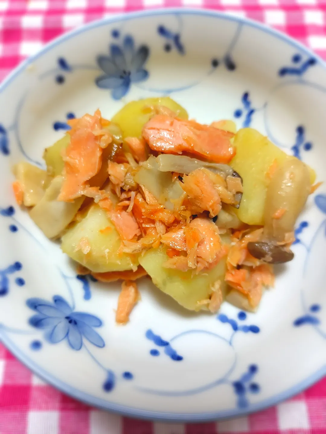 味付けはバターと塩と胡椒だけだけど、鮭とバターの旨味がじゃがいもとエリンギに染みて美味しかった♪