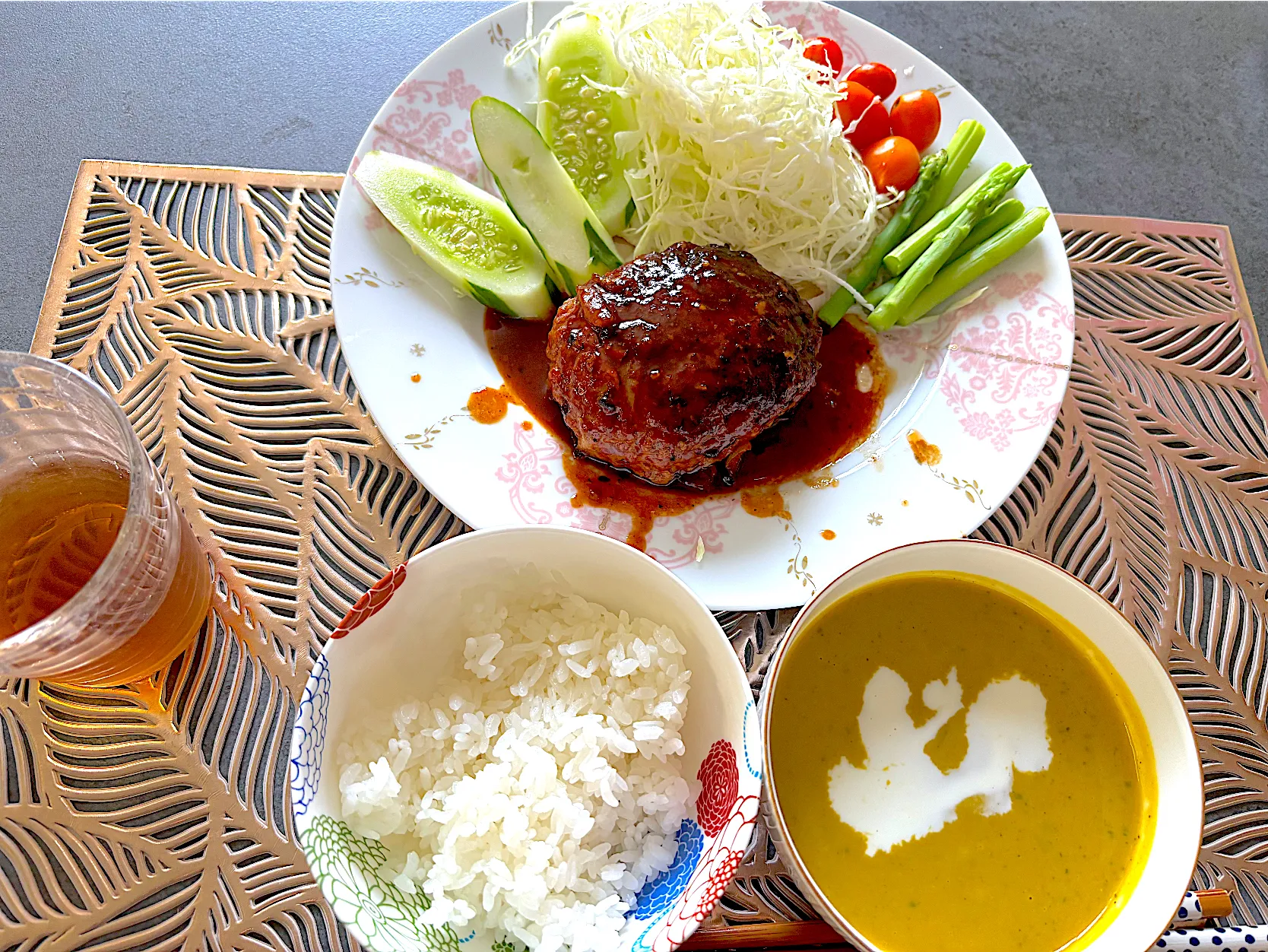 ハンバーグ 自家製かぼちゃのポタージュ