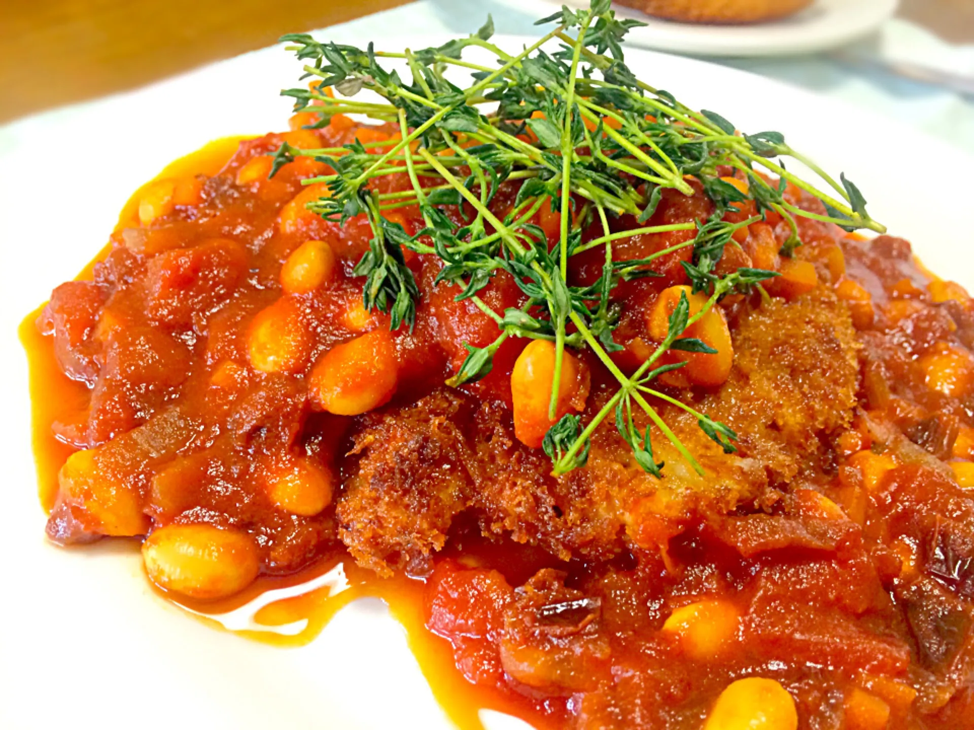 白身魚のフライ〜大豆のトマトソース添え〜