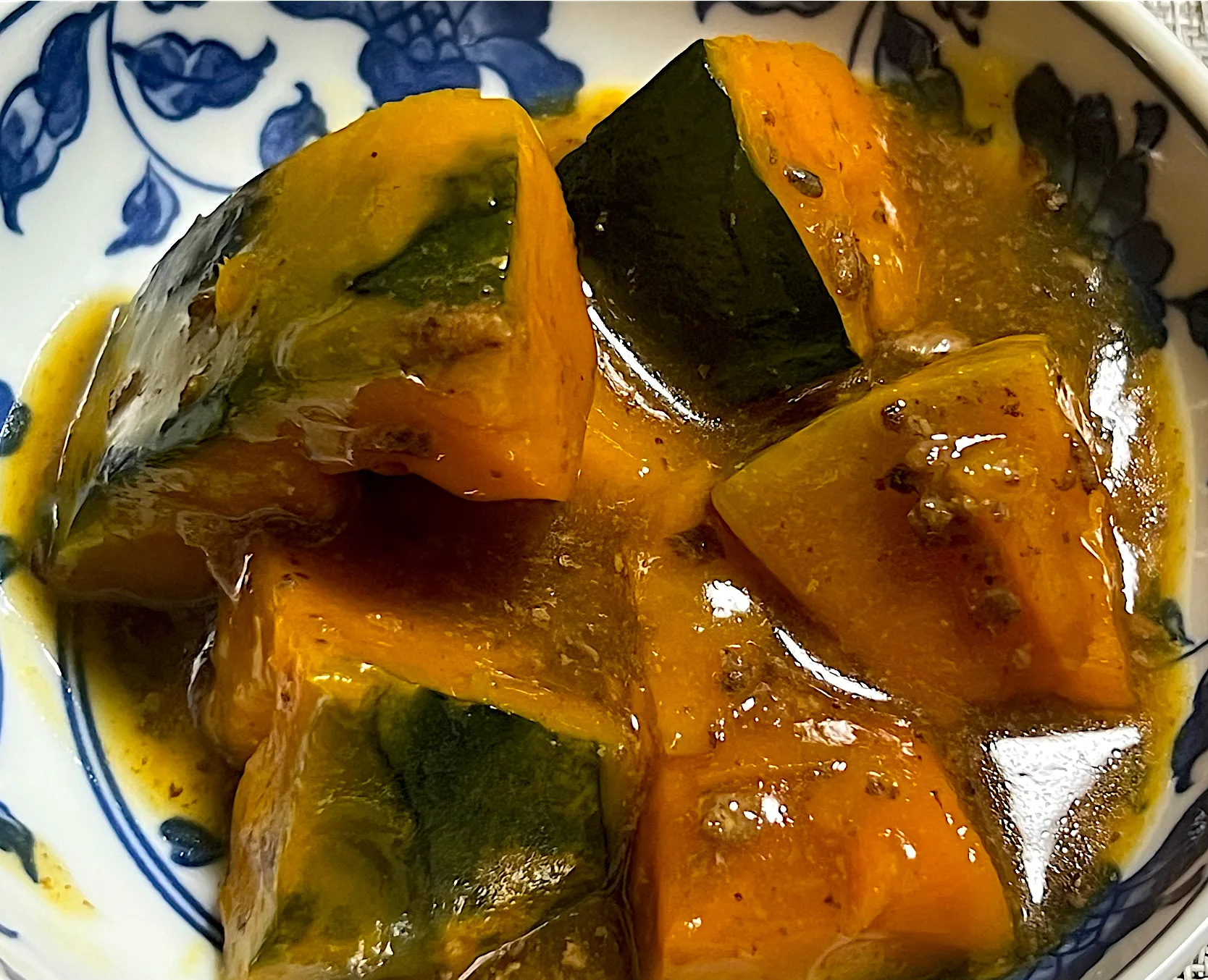 井村屋の「レンジで煮物」を使って「かぼちゃのそぼろ煮」
