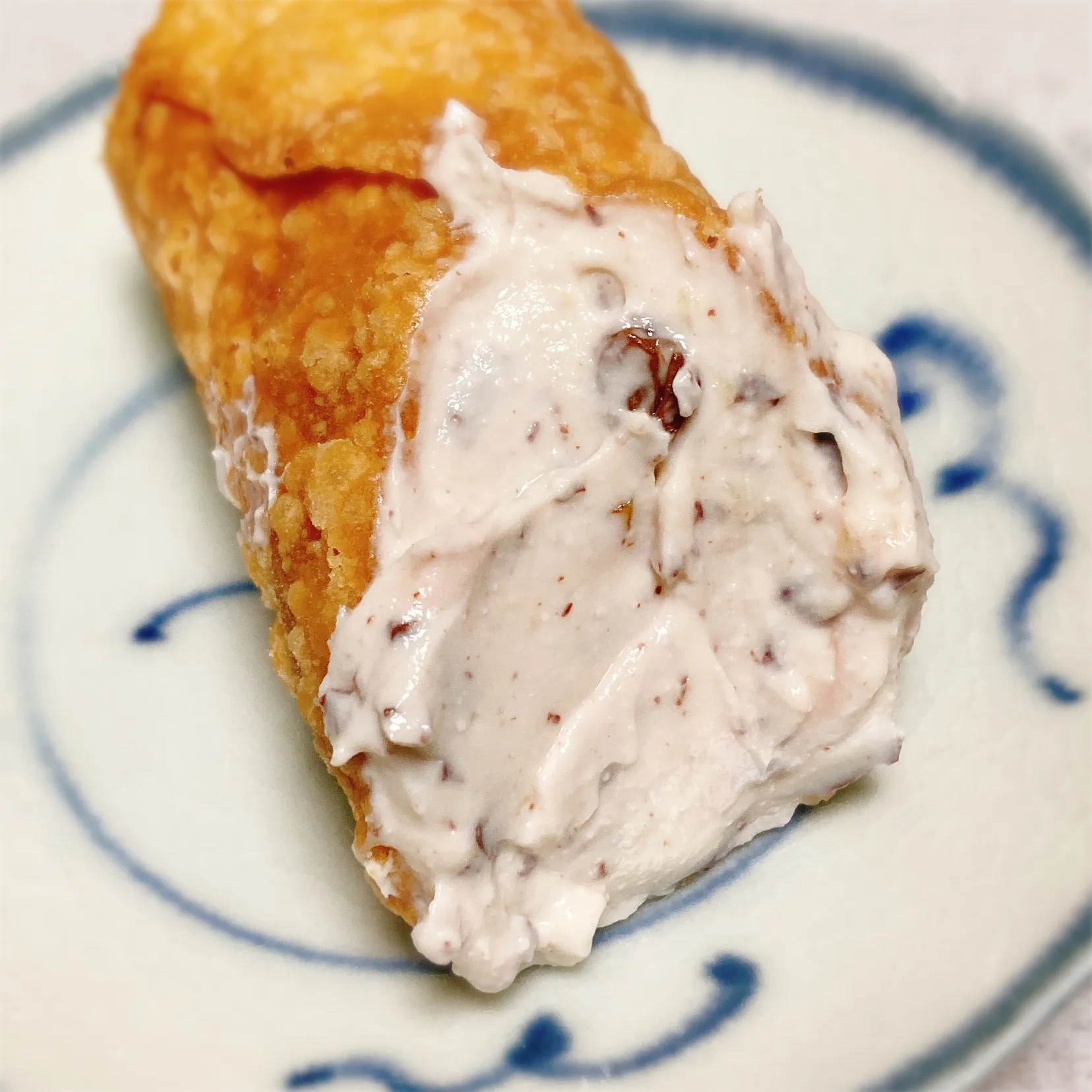 リコッタチーズのクリームには、チョコ、オレンジピール、アメリカンチェリー(冷凍)入り。