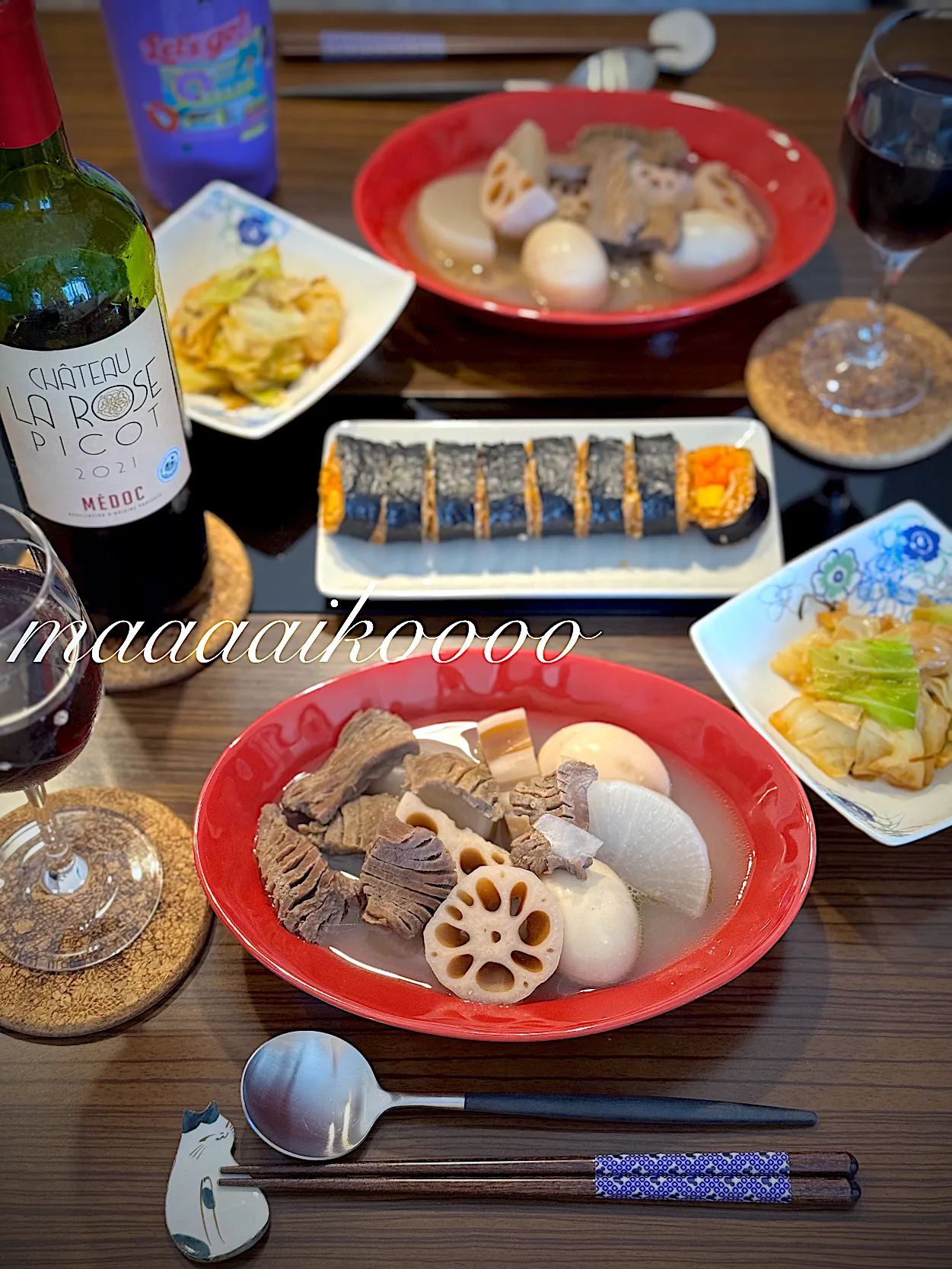 金曜の夜から煮込んでいた牛タン🐮めちゃめちゃ柔らかくて味しみしみ❤️