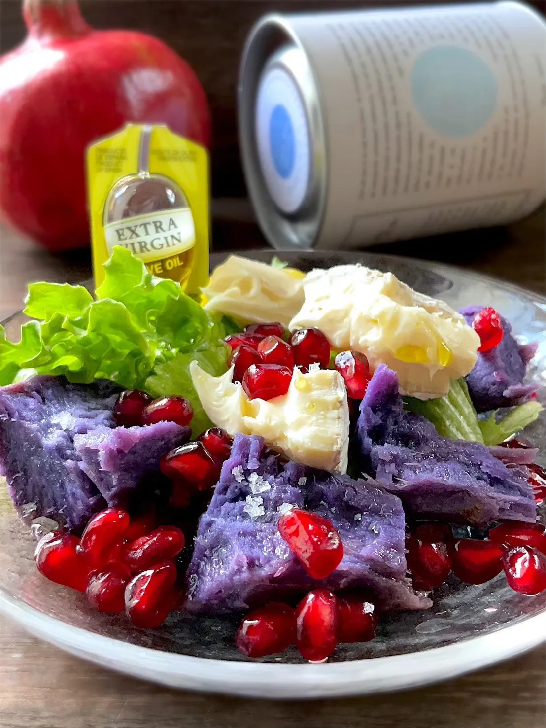紫芋とブリーチーズとざくろのマヨルカ島の塩andオリーブオイルサラダ
