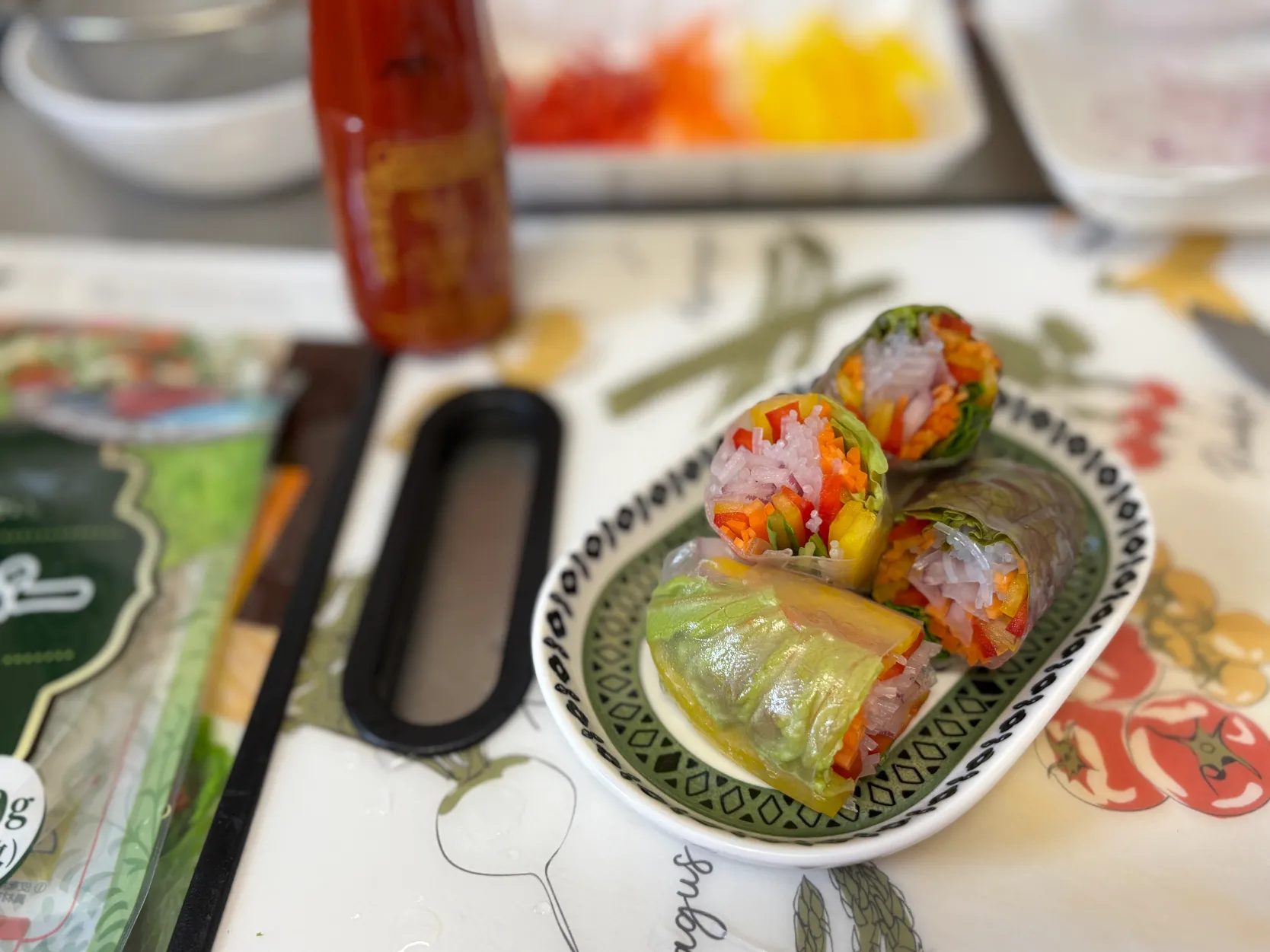 YouTubeを見ながら一緒にレインボーサマーロールをつくりました。