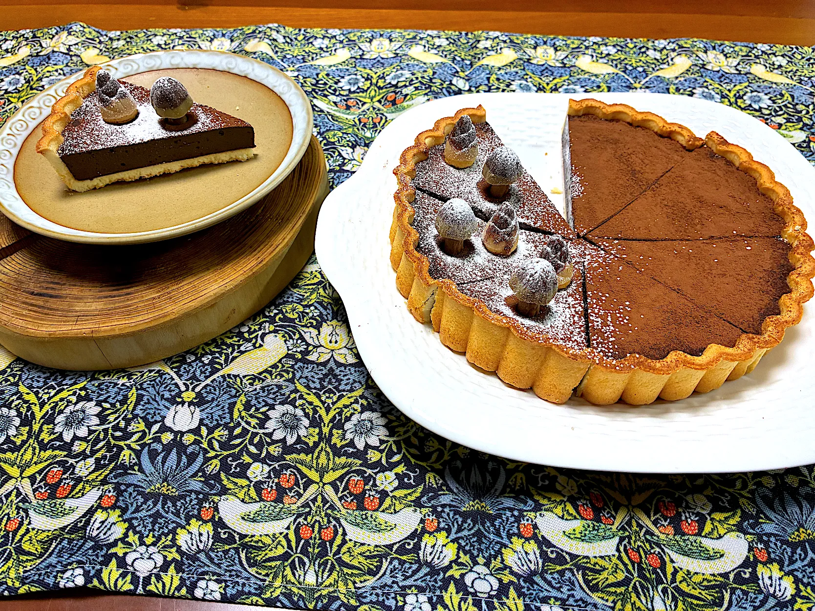 ココアを振った生チョコタルトにのっけて