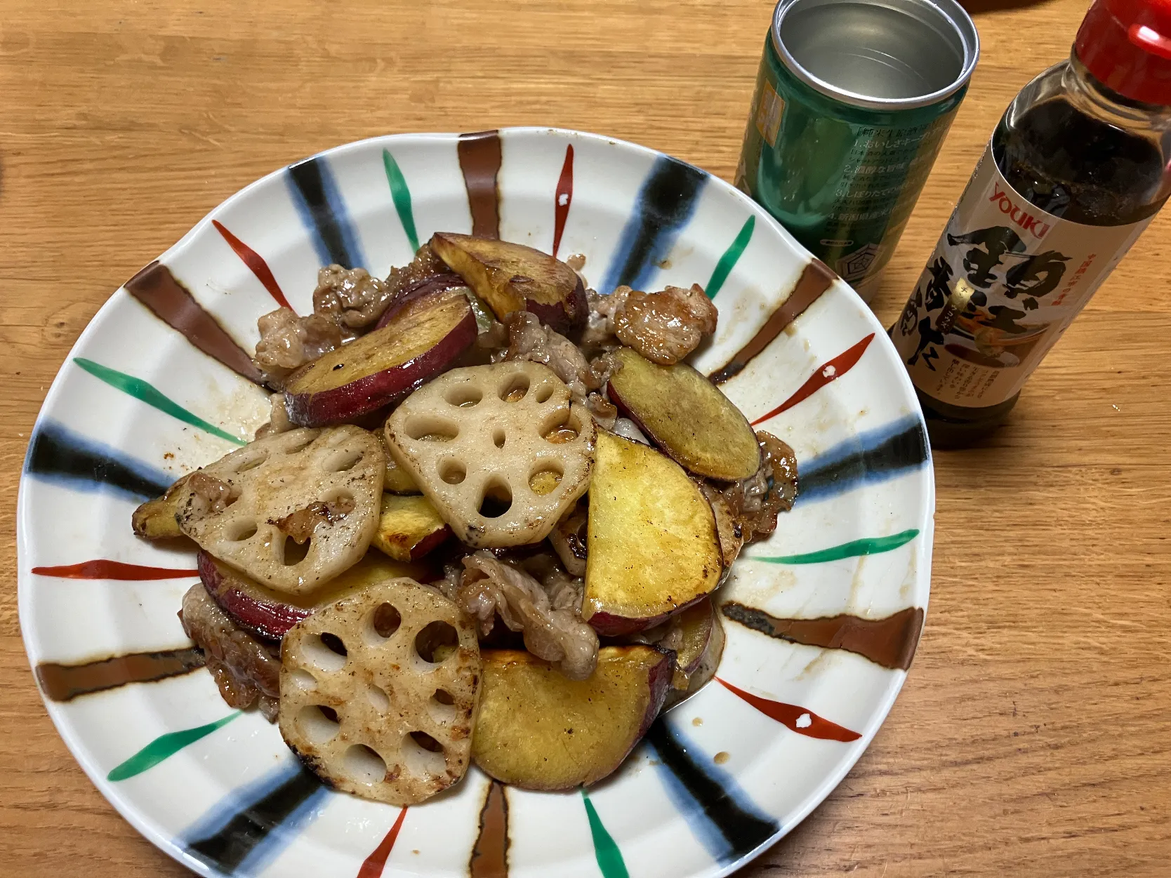豚切り落としとはすとさつまいもの甘酢炒め