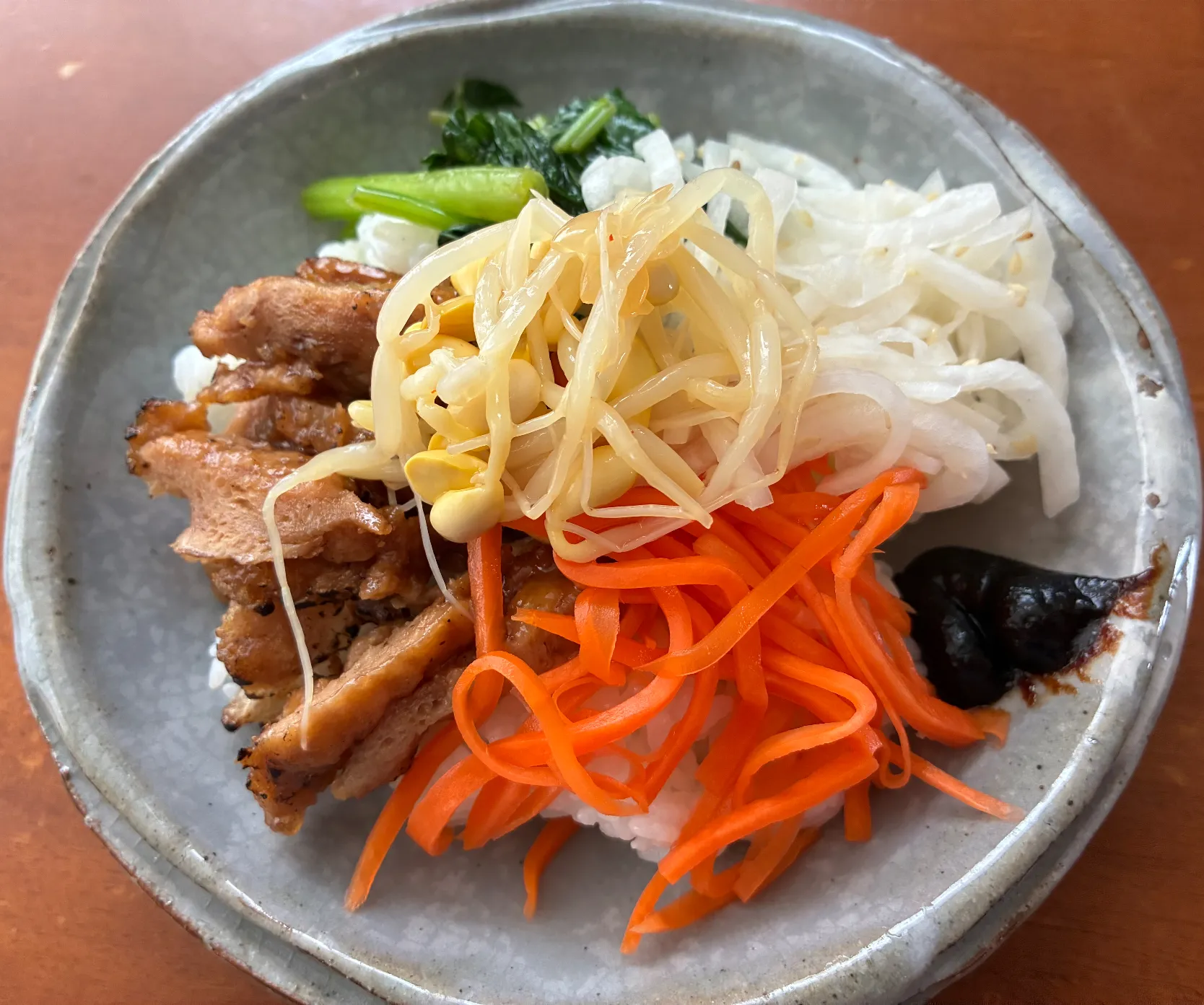 大豆ミートを照り焼きにしたのを細切りにして甜麺醤を添えて。