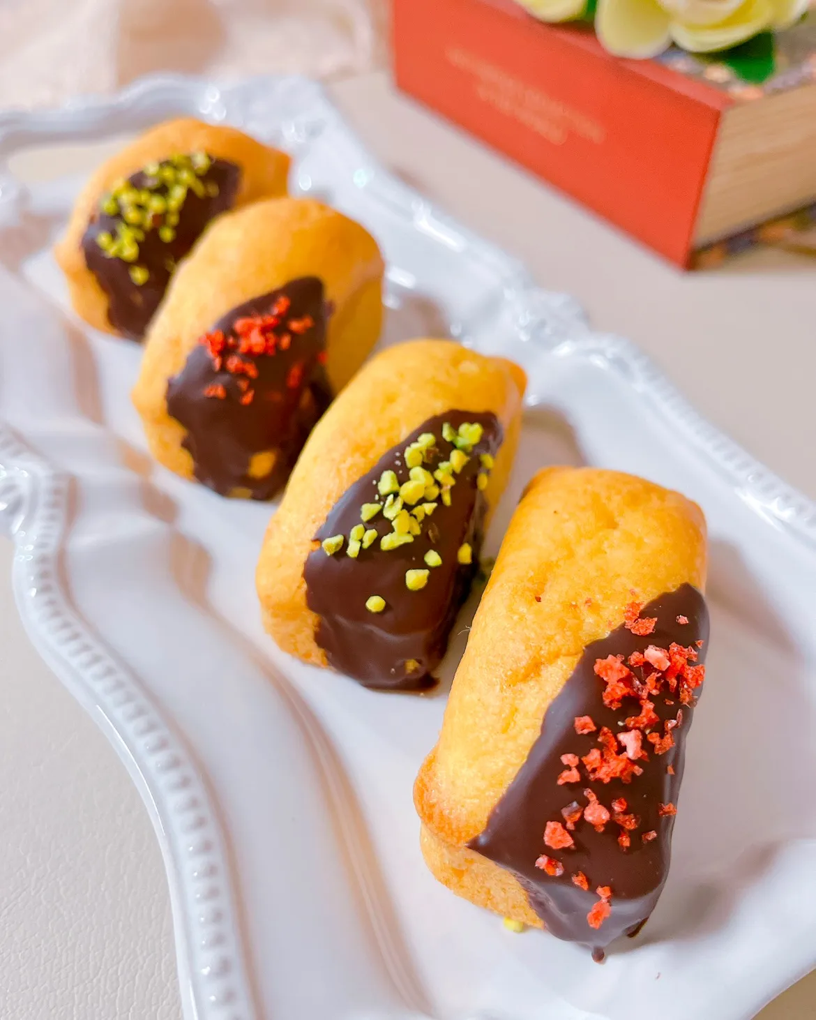 ピスタチオとドライいちごを飾りました 🍫🍓ꕀ´