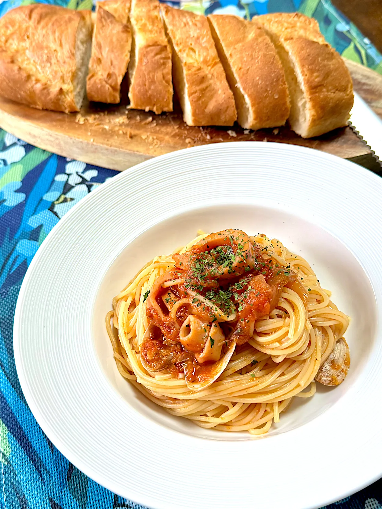 #ランチ #トマトソース #ペスカトーレ