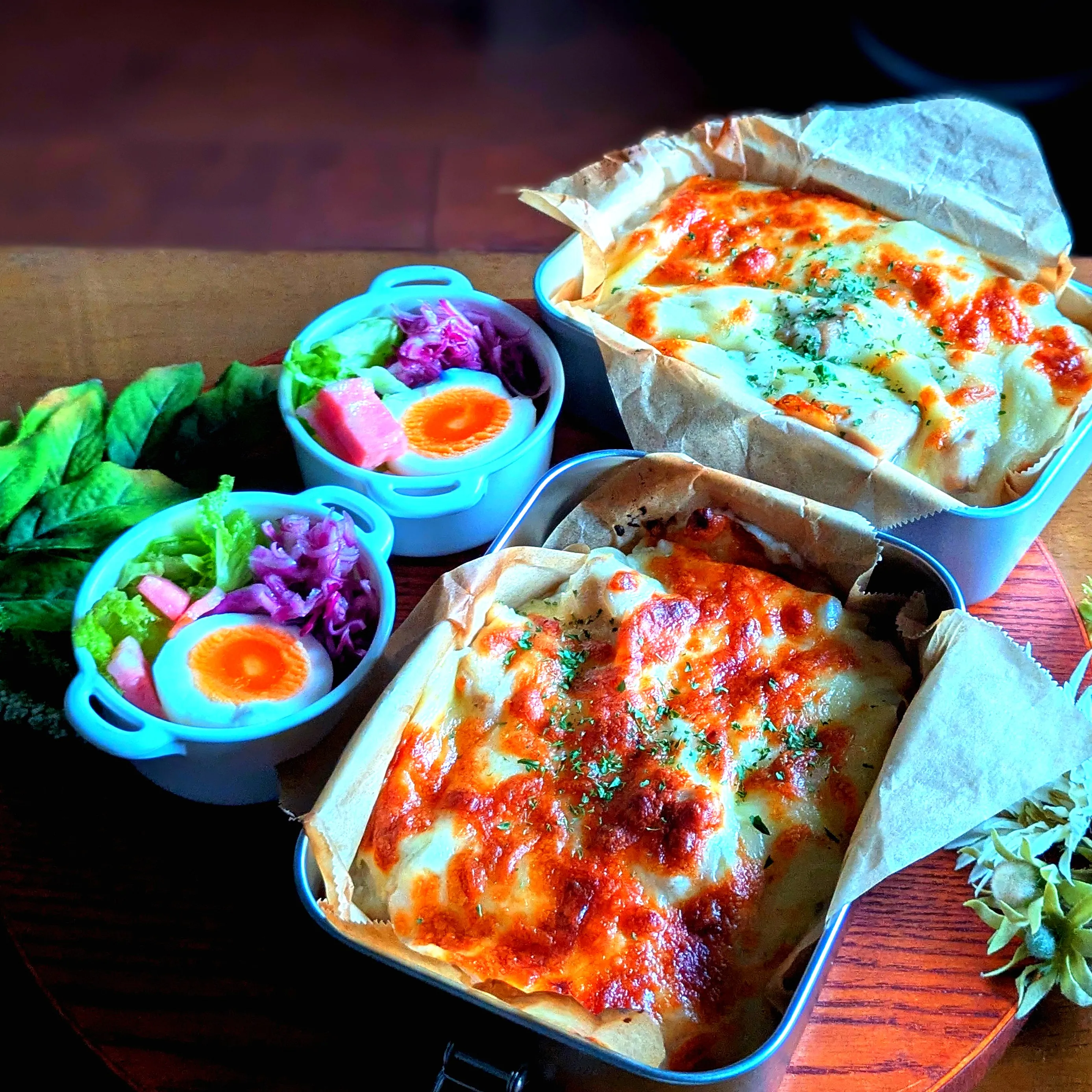 ✾ベーコンレタスサラダ、ゆで卵、紫キャベツマリネ