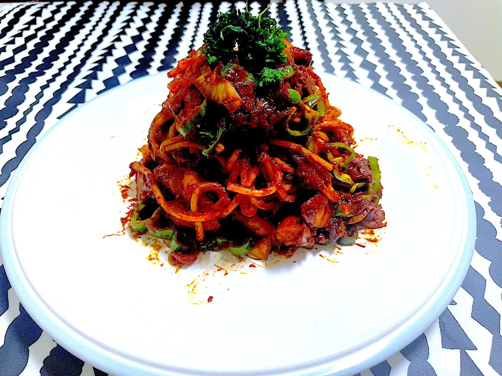 喫茶店のオレンジ色のナポリタンを目指して、ケチャップだけで仕上げるリュウジさんのレシピです。
