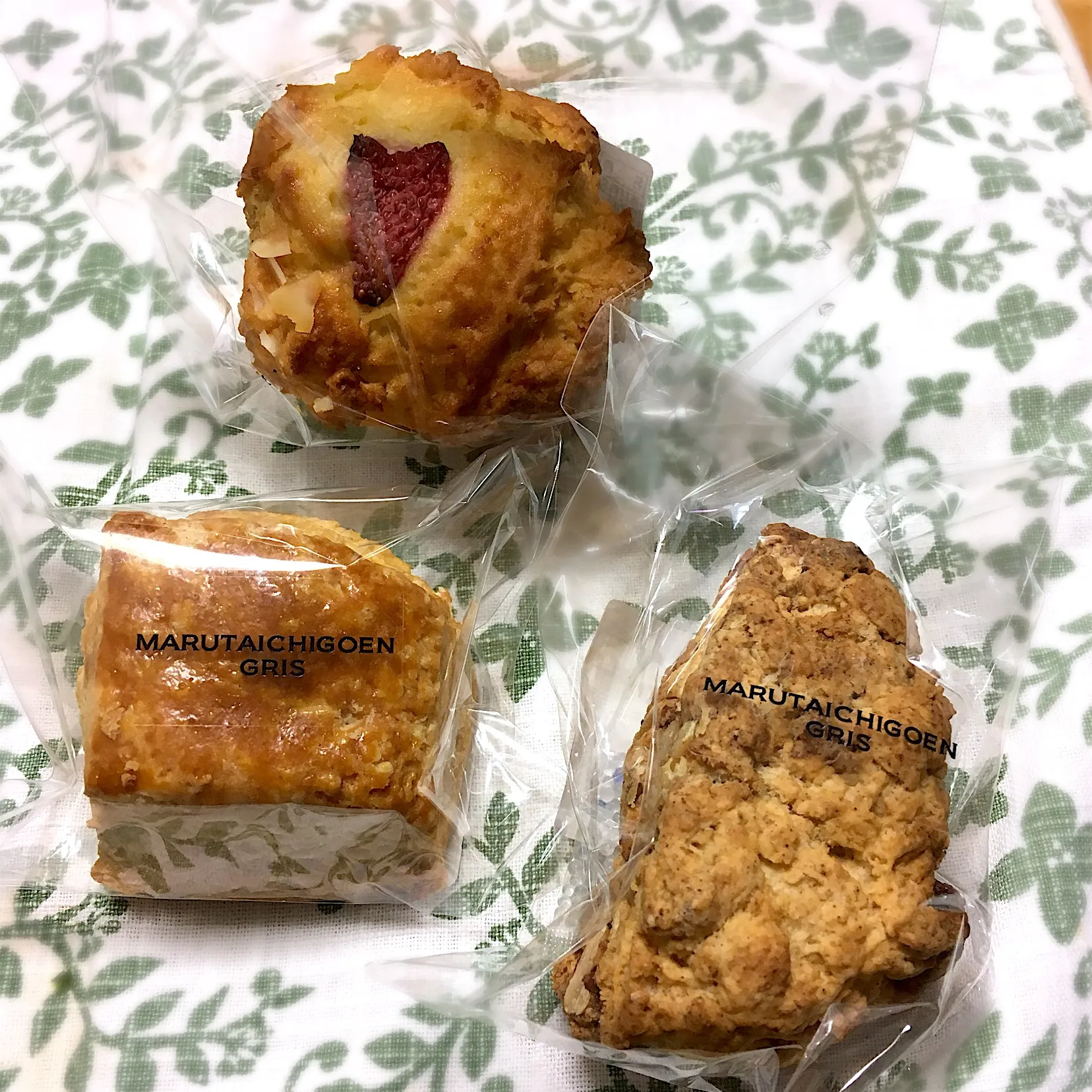 いちごのビスケットマフィン、プレーンスコーン、メイプルくるみスコーン @MARUTA ICHIGOEN GRIS