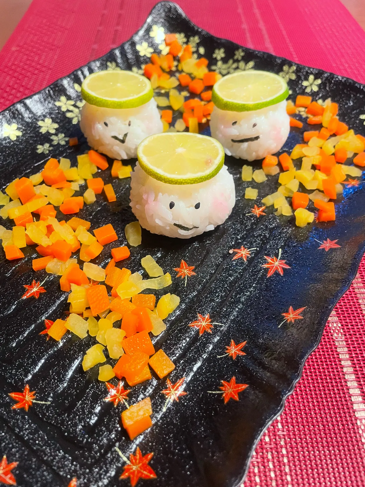 酢飯に酢橘の搾り汁を混ぜてラップでまん丸に丸めました