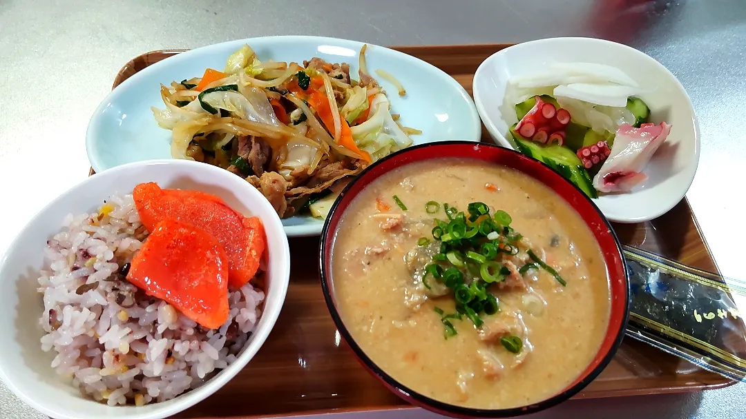 野菜炒めと粕汁