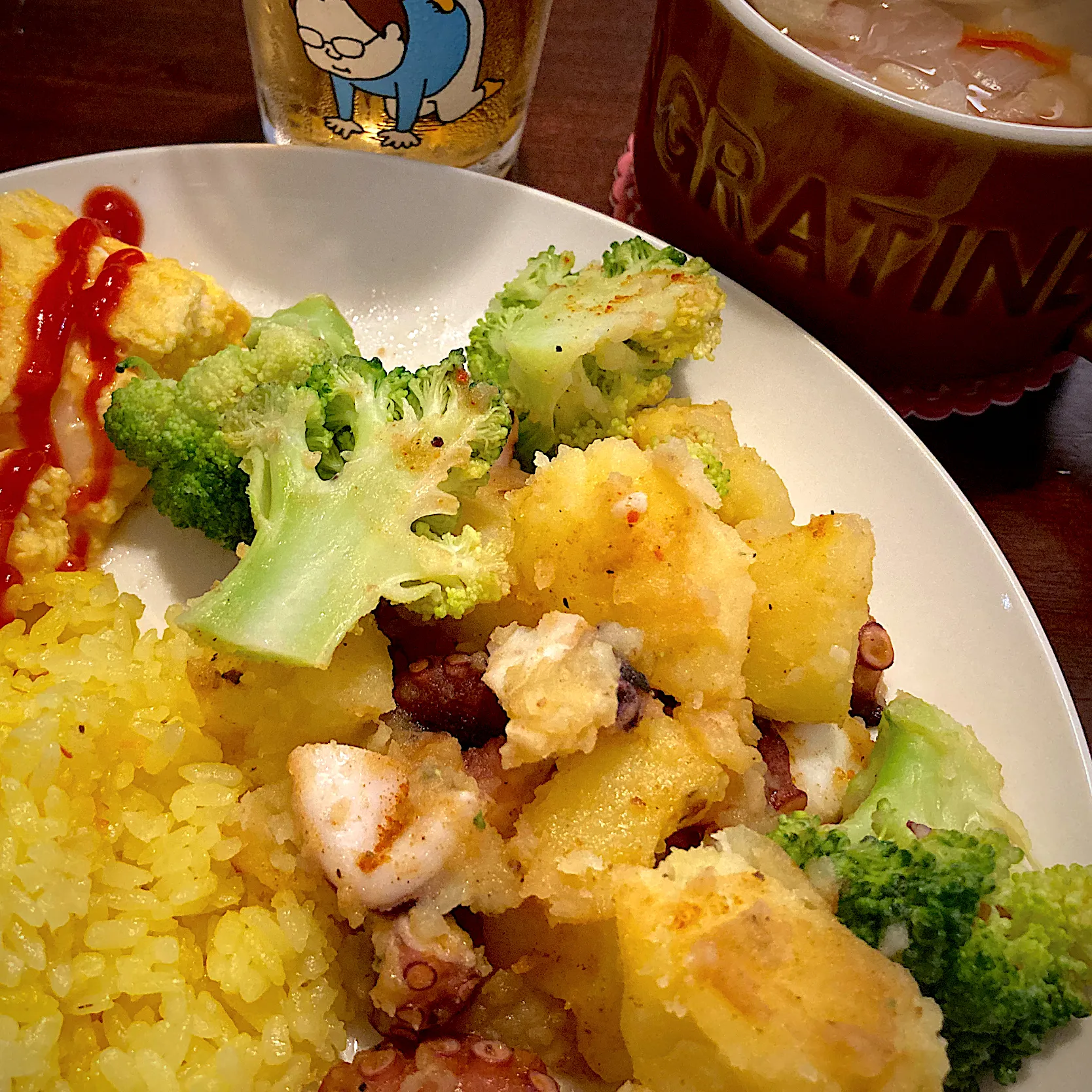 タコとじゃがいも、ブロッコリーのガーリックソテー