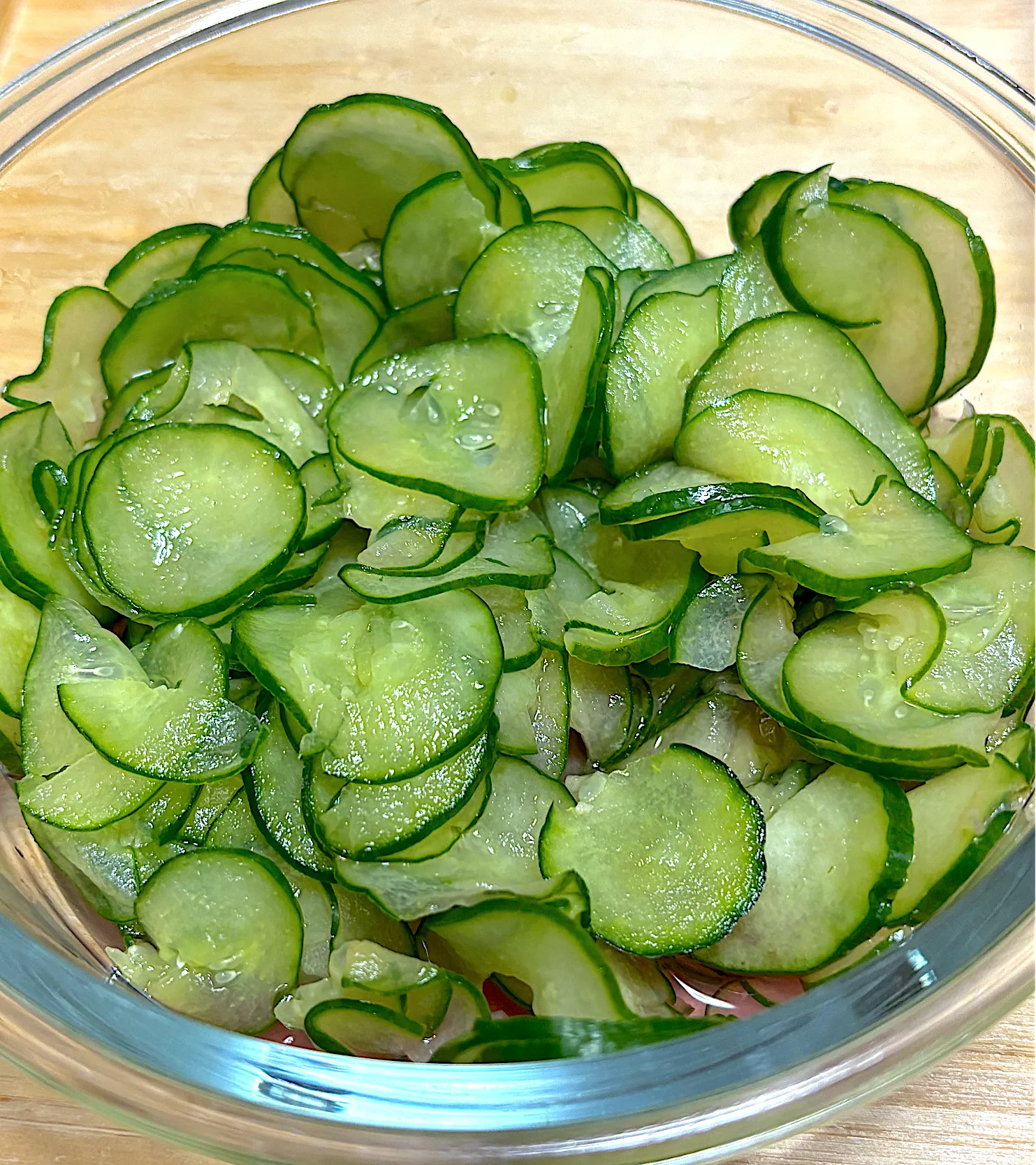 塩揉みしたキュウリに梅漬けで出た梅酢を混ぜただけの超簡単箸休め