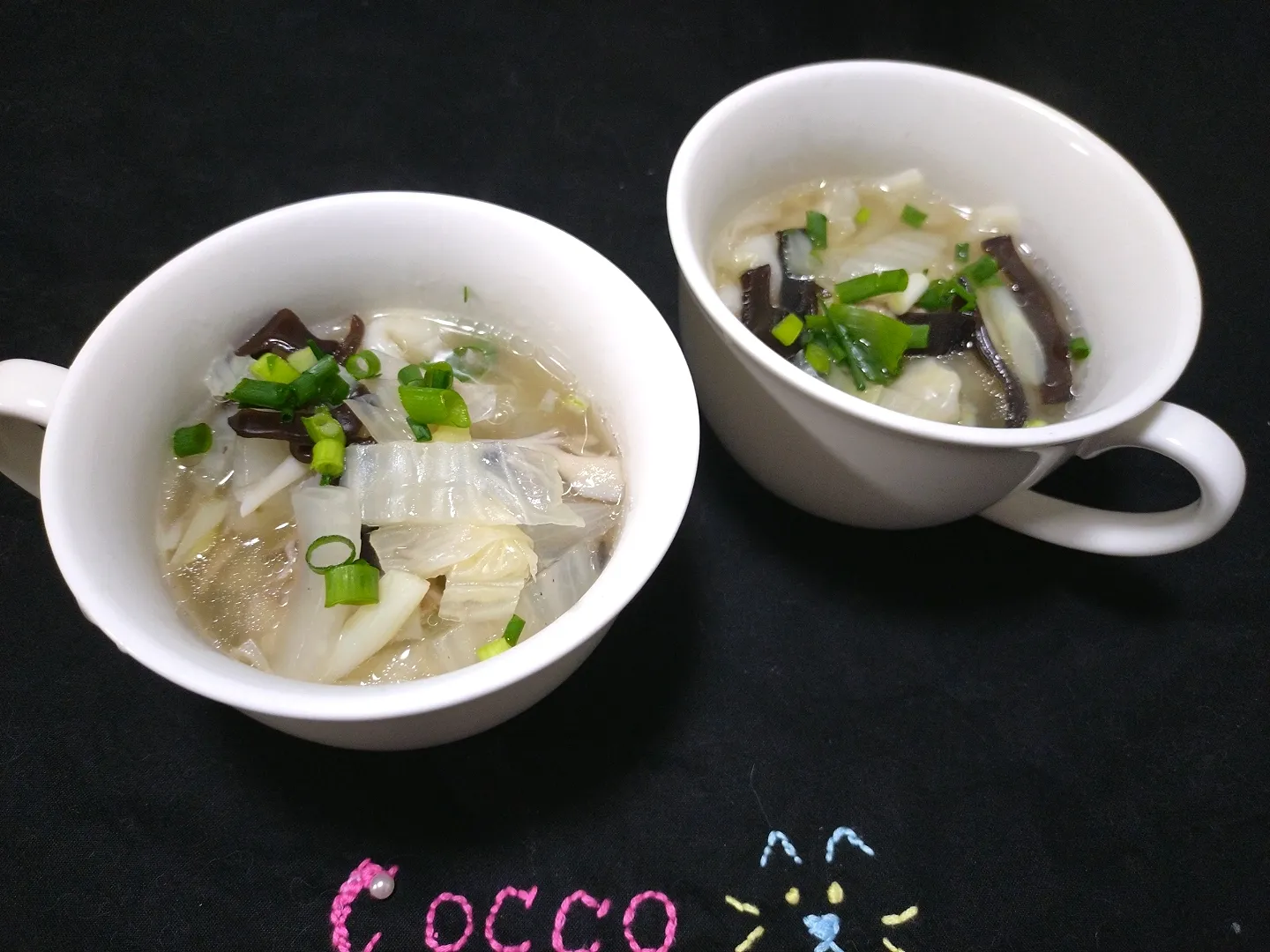 ワンタン大好きだし、白菜、白ネギ、きくらげ入りの具沢山スープ凄く美味しそう〜😋