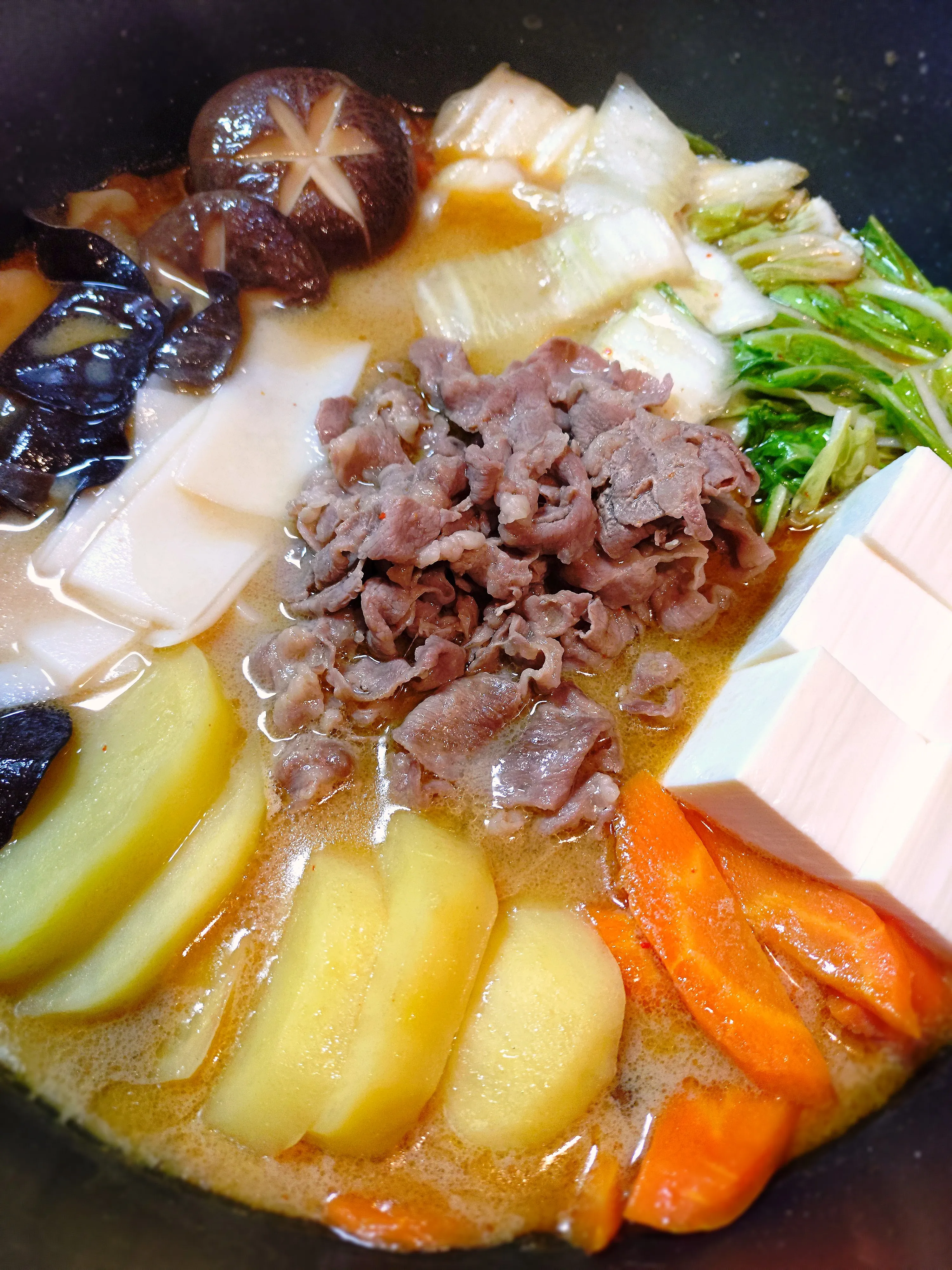 豆腐・しいたけ・白菜・米粉ワンタン・人参も入れました😊