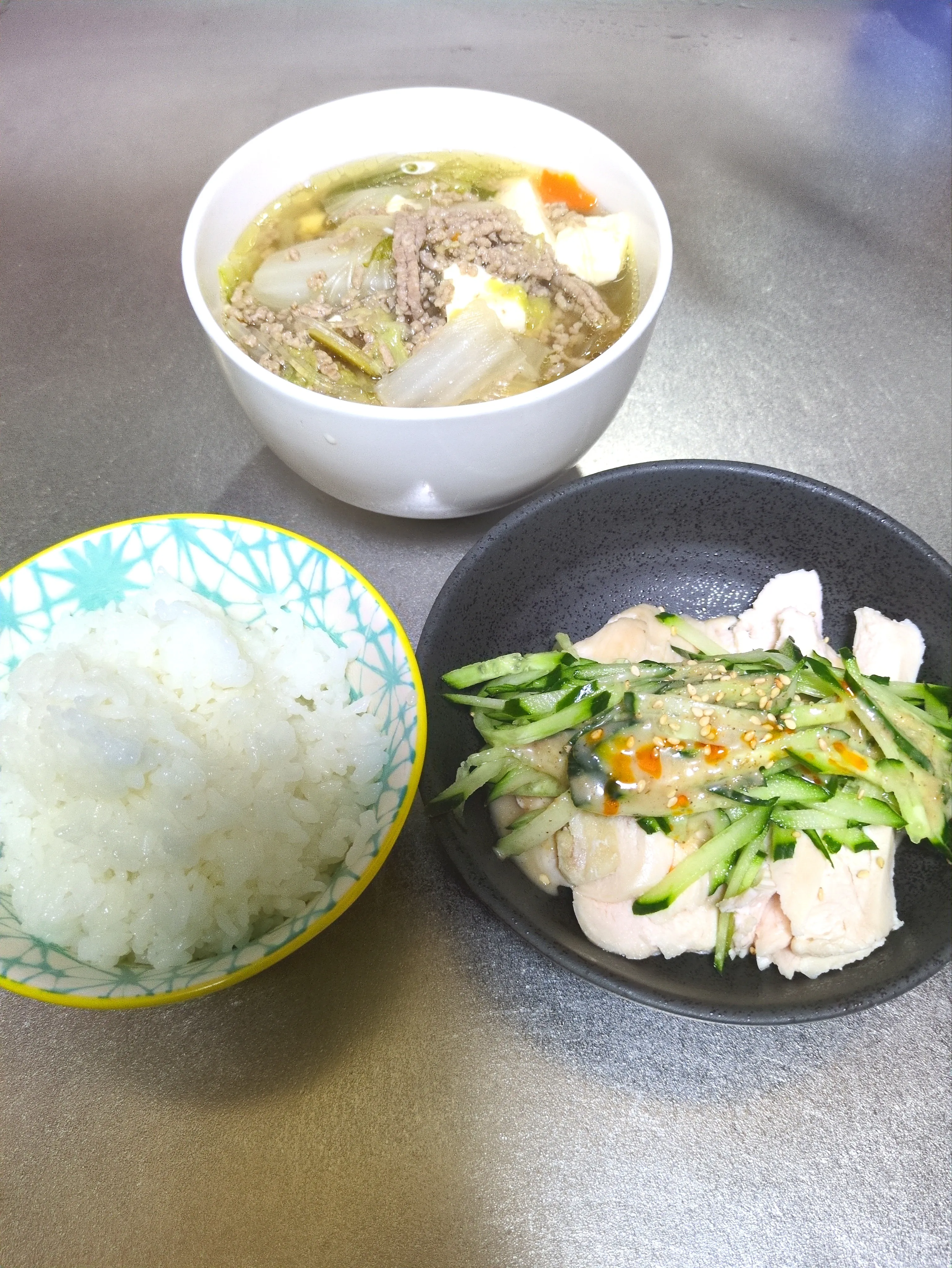 #晩ご飯#ゲーンチュートタオフー#棒々鶏#シーユーカオ#豚挽肉#白菜#人参#春雨#豆腐#鶏むね肉#きゅうり#ごまだれ#ラー油