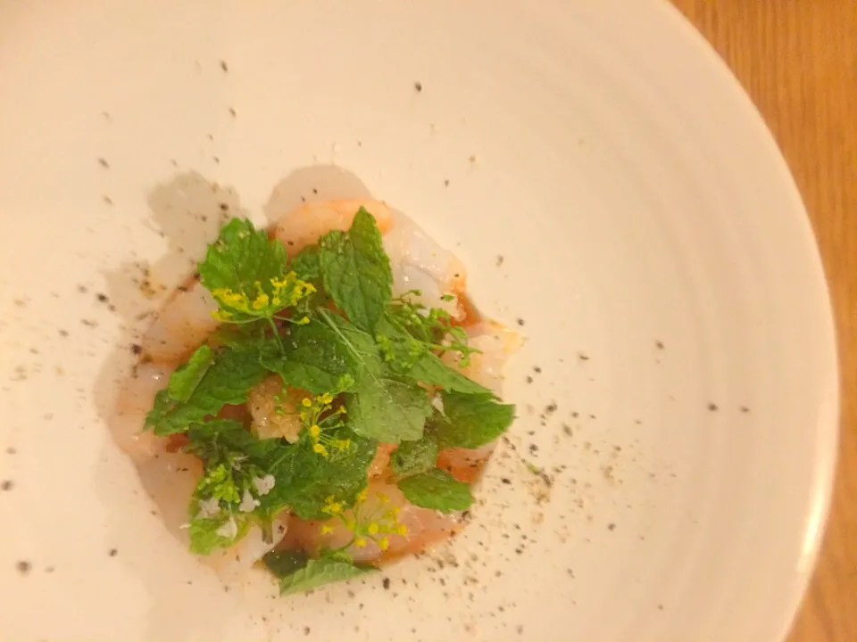 桃とトマトと海老のカッペリーニ スペアミントのアクセントで