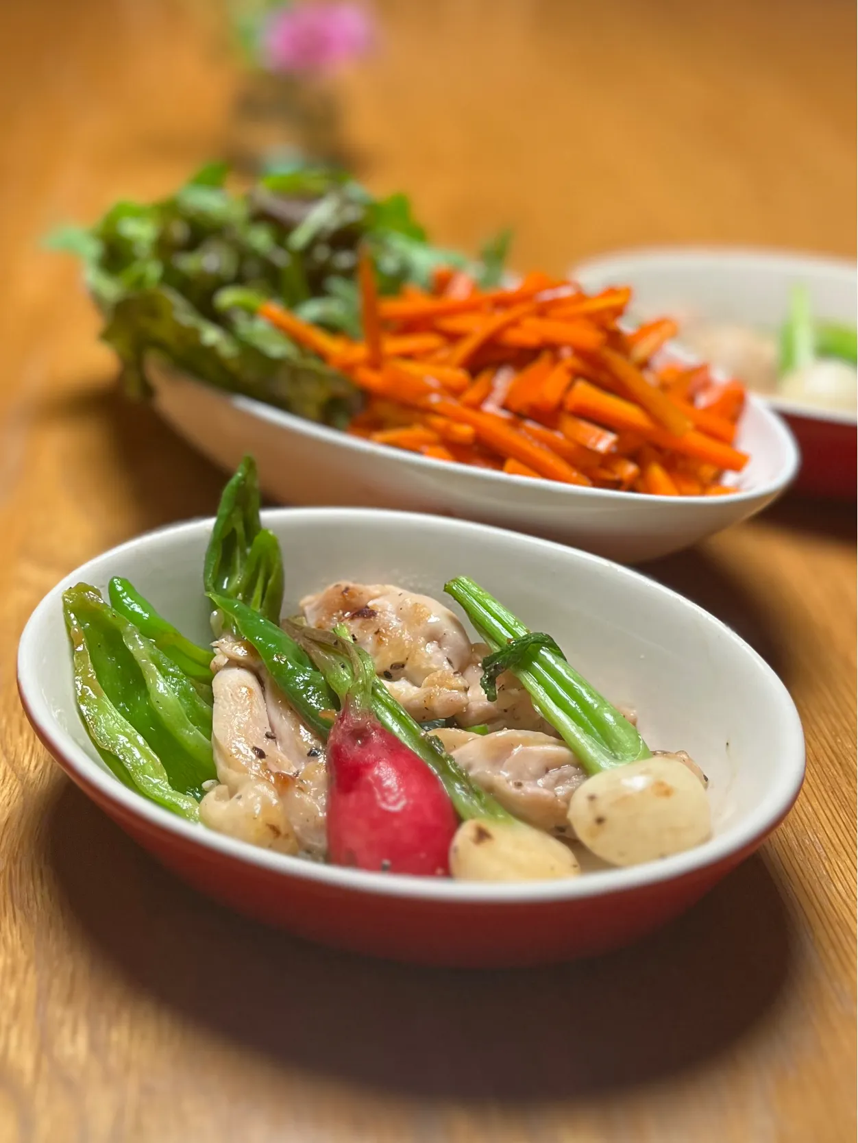 11/16の夕食 鶏野菜塩炒めとニンジンのサラダ