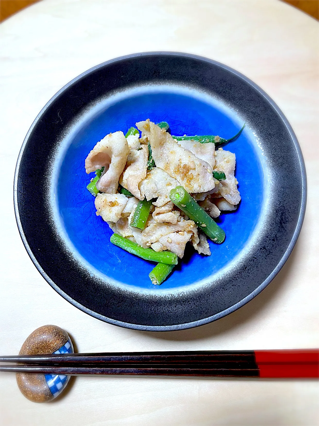 豚肉といんげんの胡麻和え