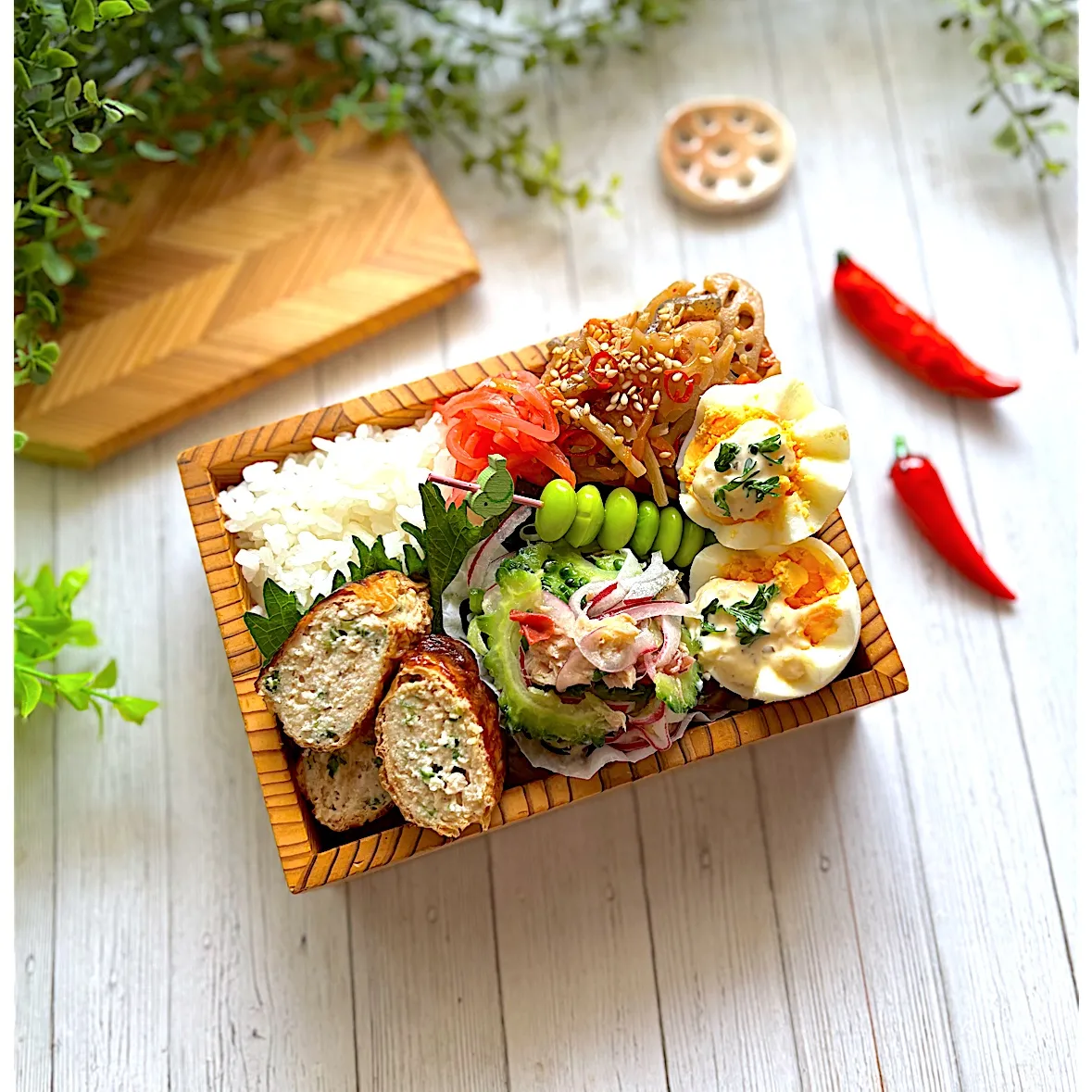 ゆで卵、きんぴら、紅生姜、枝豆 #お弁当 #娘弁当 #デリ風サラダ#お稲荷さん