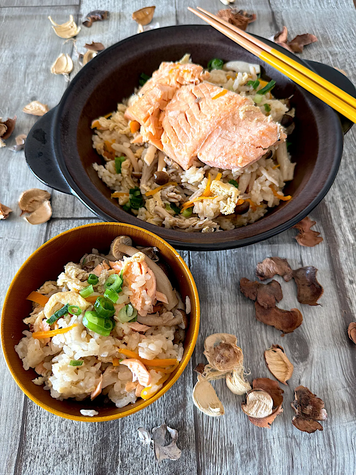 サーモンときのこの炊き込みご飯🍄🟫 これは間違いなく美味しいです😋