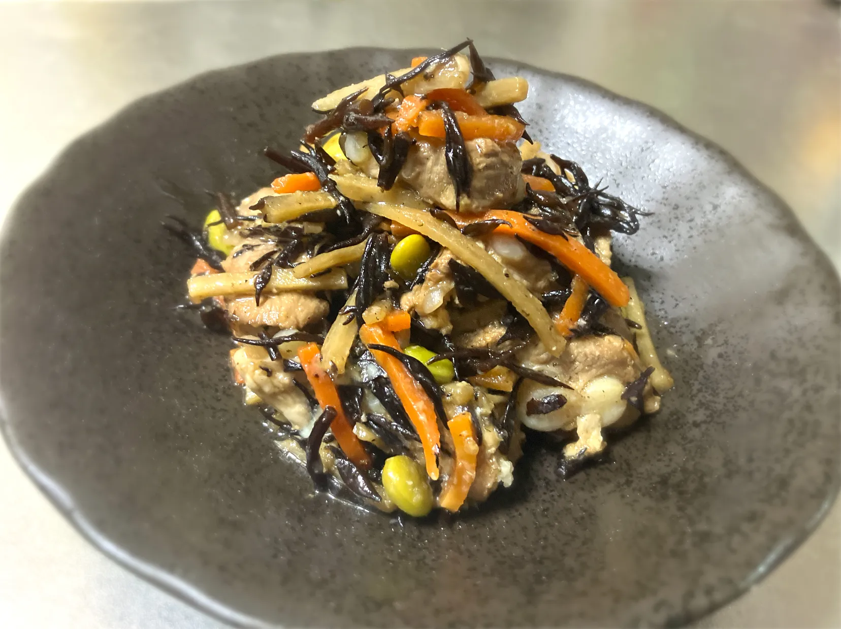 ゴボウとひじきとニンジンとバラ先軟骨を炊いたん|ゆめみどりさん