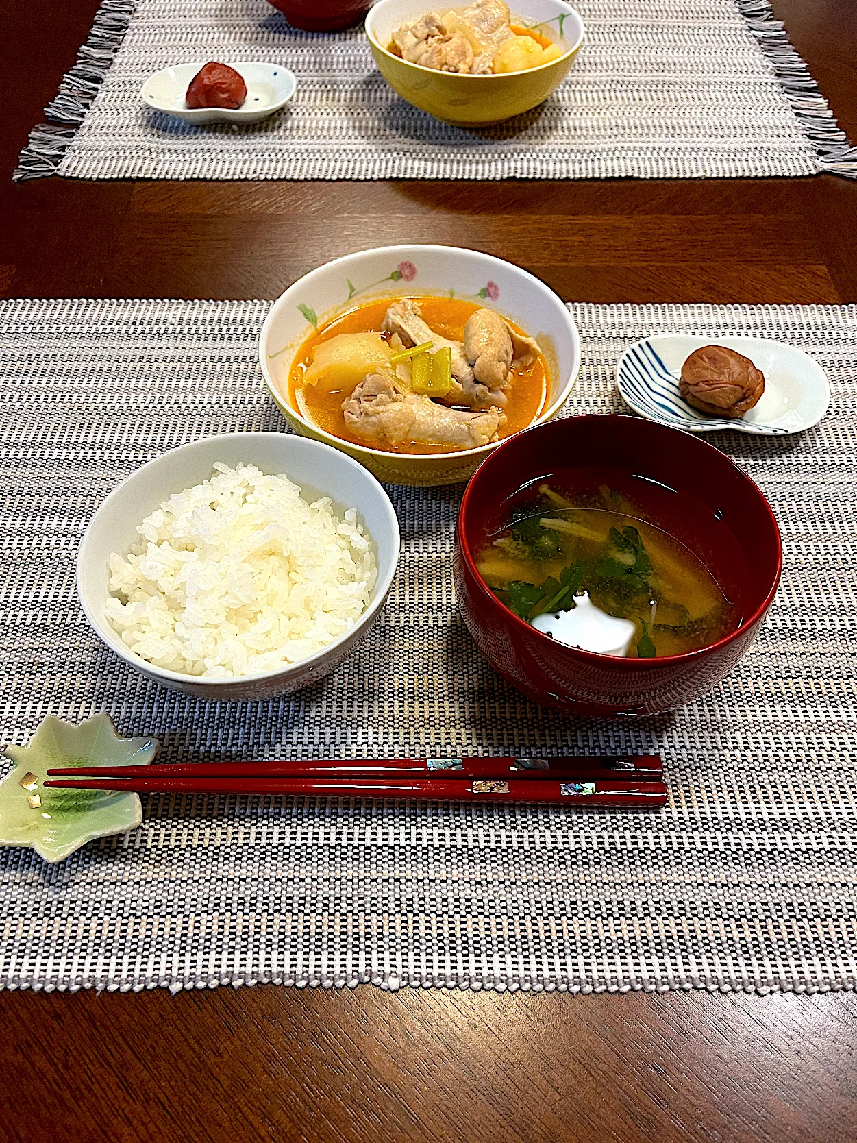 ※手羽元は350gくらい、じゃがいもは4→3個に減らして、粉唐辛子は赤唐辛子1/2本で代用しました。それで4人分くらい出来ましたね。