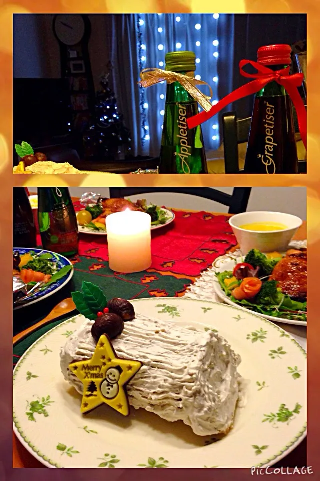 ブッシュドノエル、チョコ味は食べられへんから マロン味にしたんやけど なかなか風味が良かったよ。