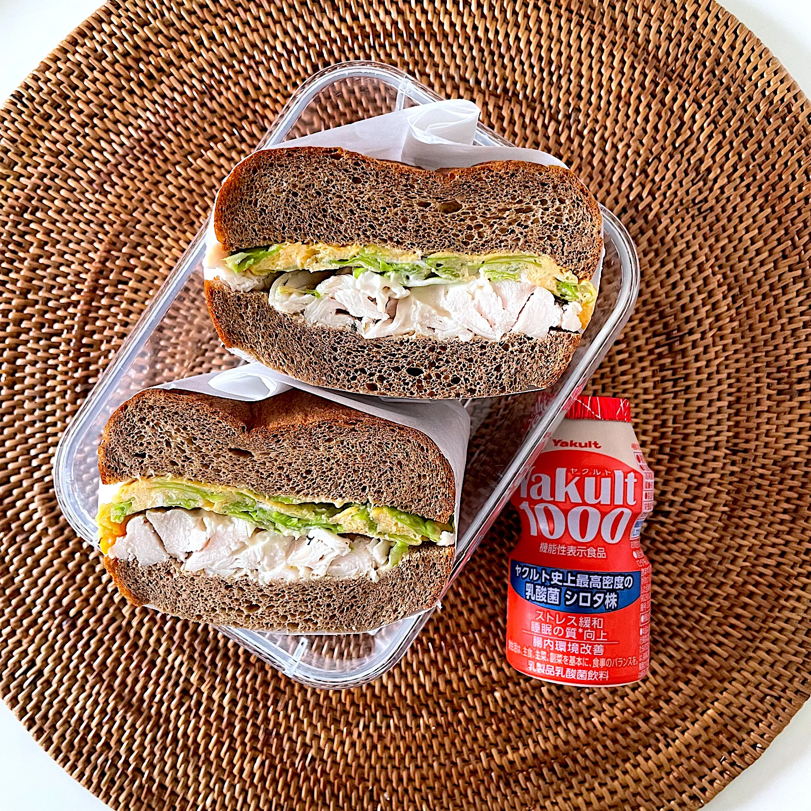 ブラン食パンでキャベツ入り卵焼きササミサンドイッチ