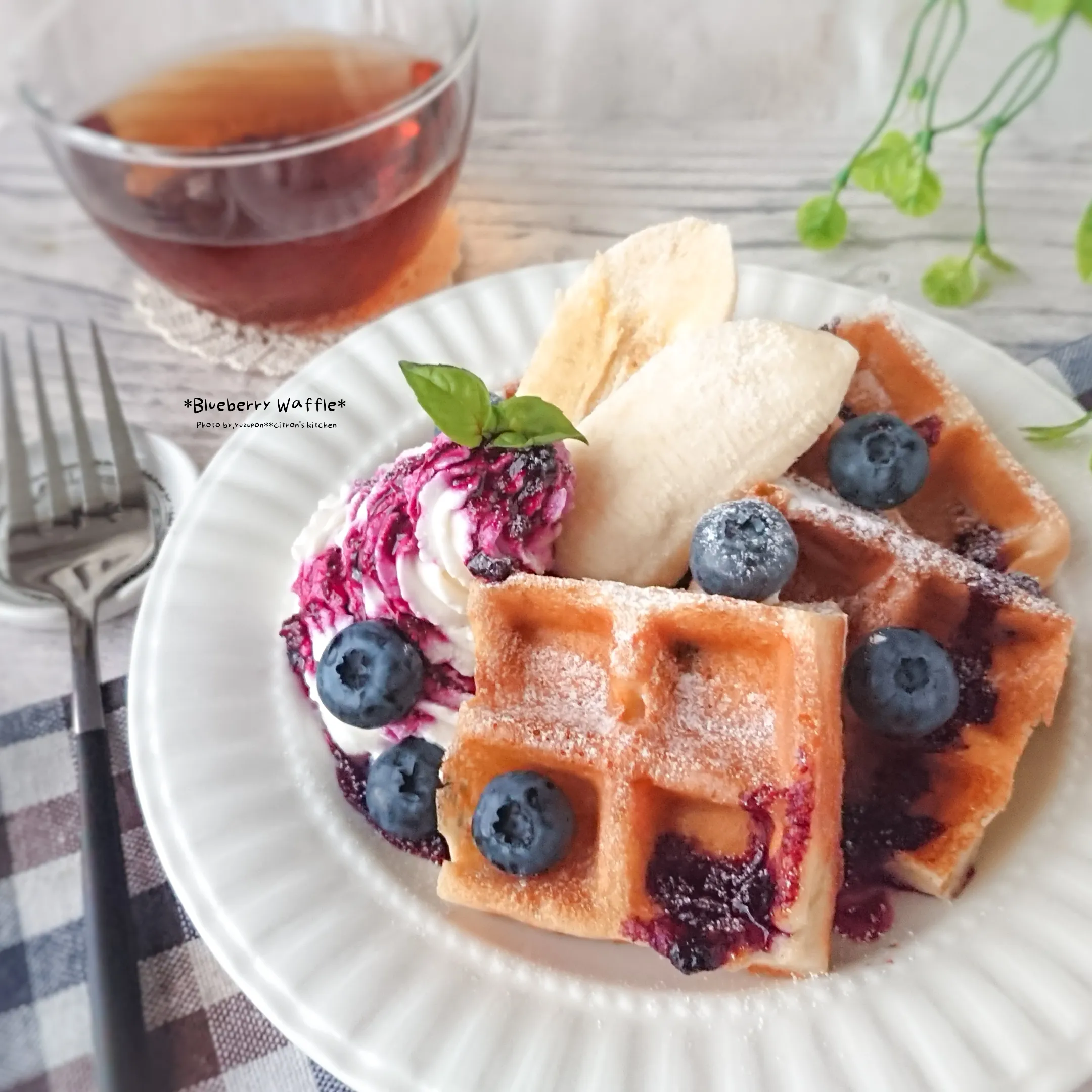 #おやつ #ブランチ #デザート #ブルーベリーワッフル #ブリュッセルワッフル #卵なし #ブルーベリー #バナナ