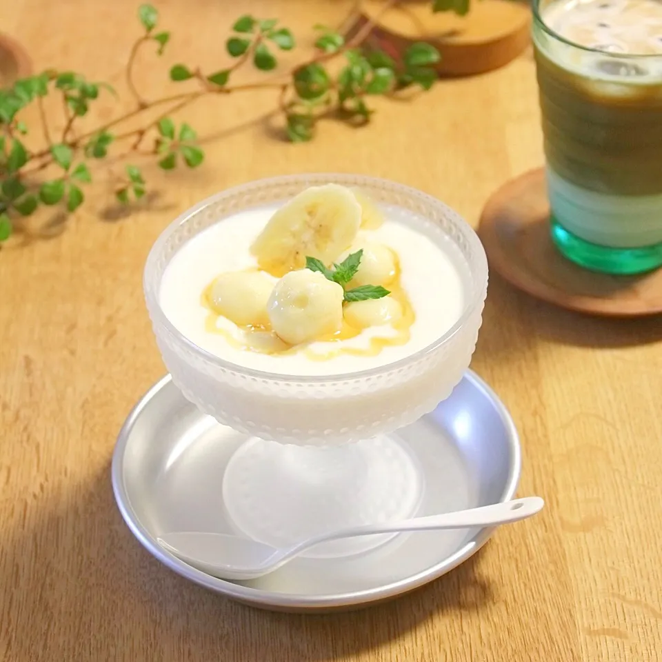 ヨーグルトにアイスの実完熟バナナを載せてはちみつをかけただけの簡単デザートだけどうまーいです✨