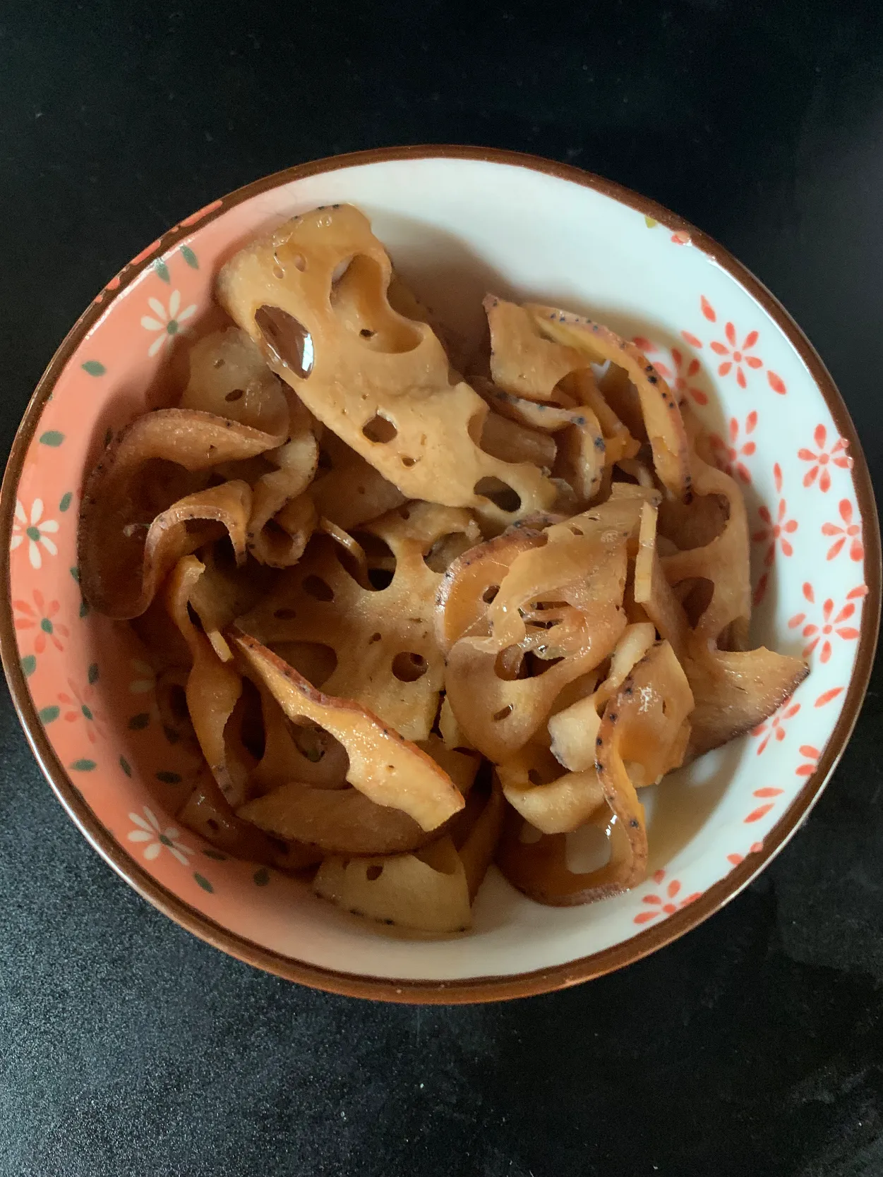 干しれんこん、醤油、出汁の素、お湯を入れて