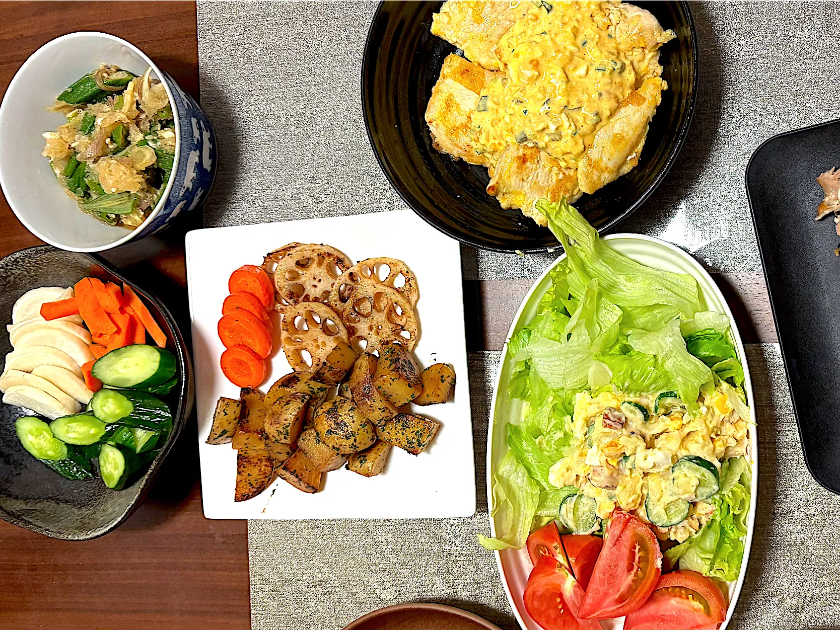 鯵の南蛮 糠漬け 切っただけのサラダ