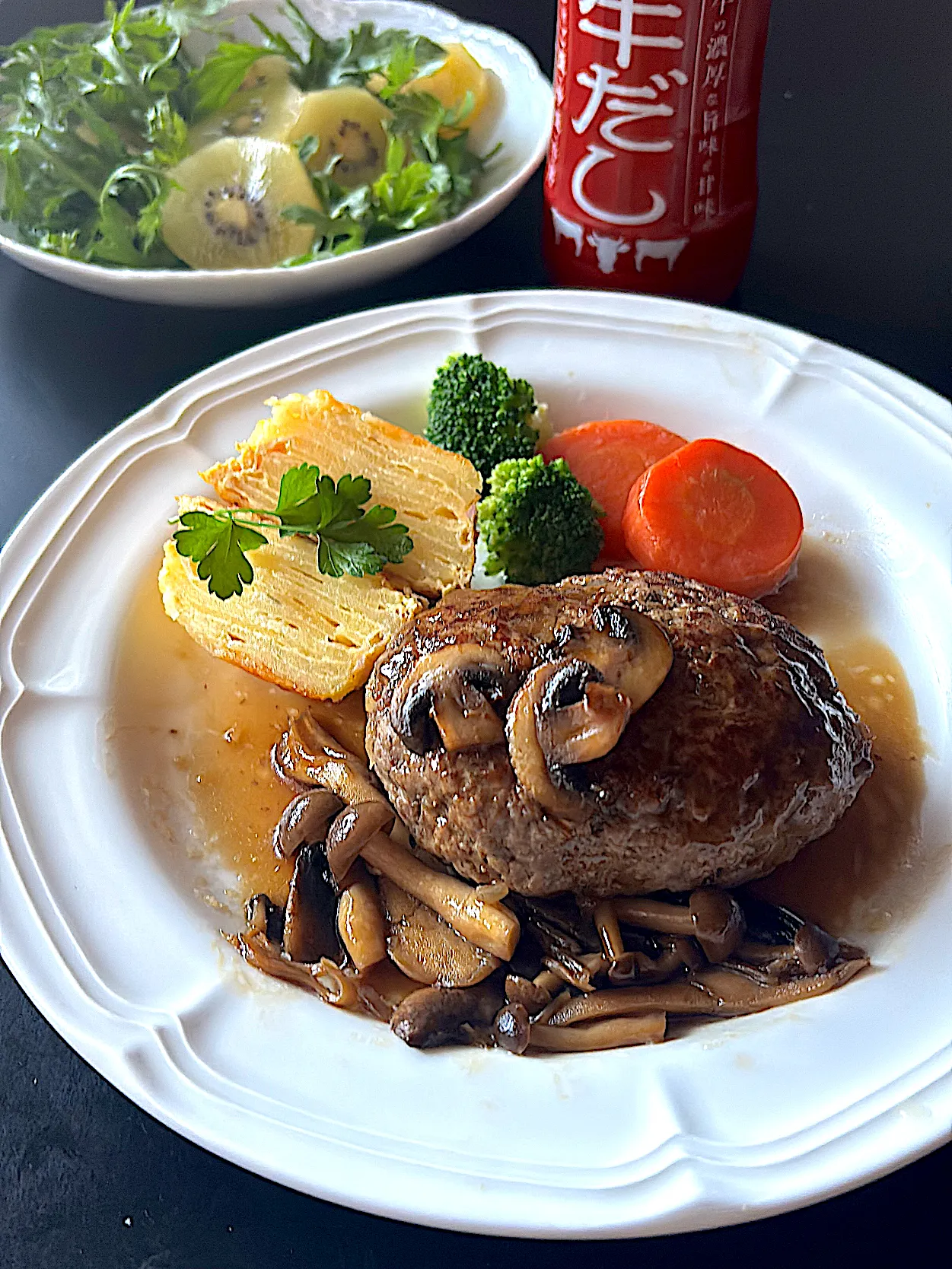 主役のハンバーグのレシピはnot foundでしたが牛だしで。